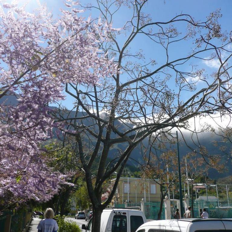 Eigentlich viel zu früh klingelte der Wecker um 6.30 Uhr, da wir doch noch etwas Nachholbedarf hatten, aber um 7 Uhr bekamen wir unser Frühstück und ein Berg sollte auch noch erklommen werden. Liebevoll war am Balkon gedeckt. Es gab Tee, Kaffee, Croissants, Marmelade und Obst. Wir packten dann unseren Rucksack und fuhren mit dem Twingo in Richtung Berge. Unser Ziel sollte der Parkplatz Le Maido auf 2100 Metern sein. Unzählige Kurven schlängelten sich nach oben und der Twingo keuchte ganz schön heftig. Bis 1000 Hm blühte sehr viel, dann kamen wir in eine Art Regenwald und später waren wir oberhalb der Baumgrenze mit Büschen und kleineren Pflanzen. Nach ca. 1 Stunde Fahrt erreichten wir bei blauem Himmel und Sonnenschein den Parkplatz von Le Maido.