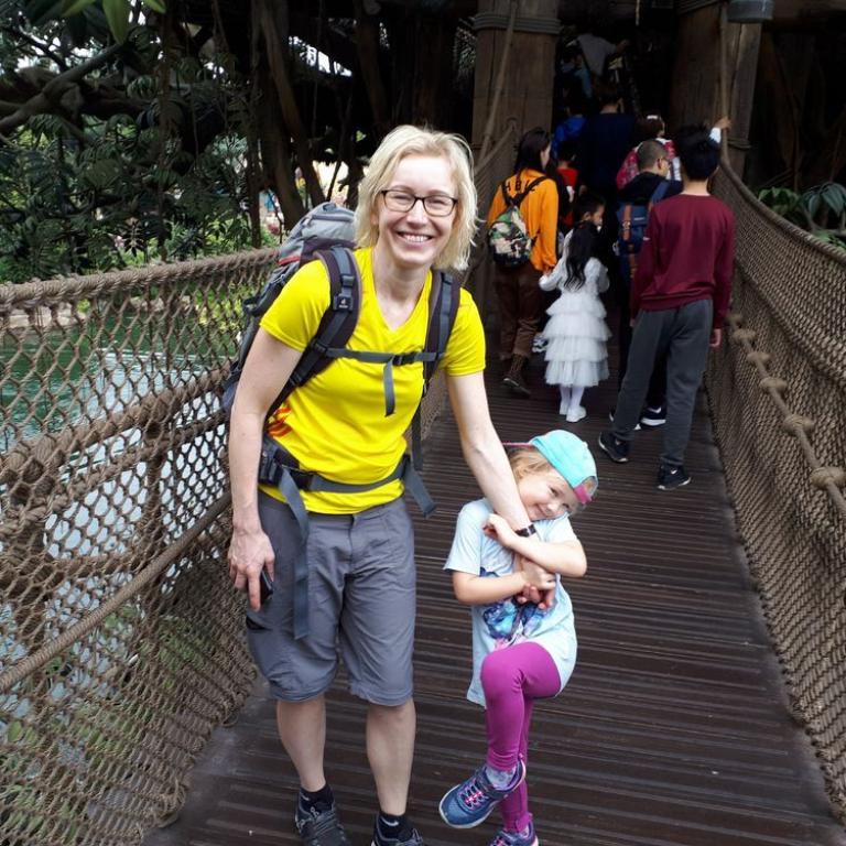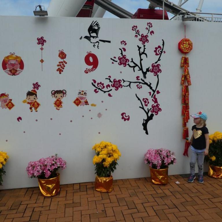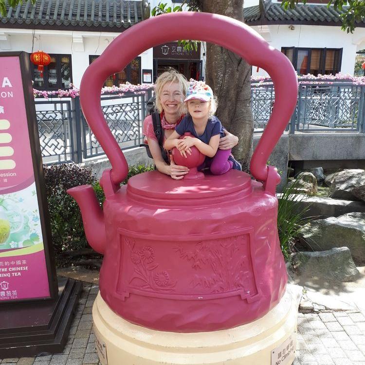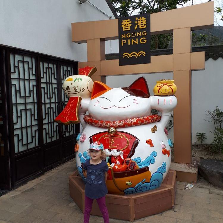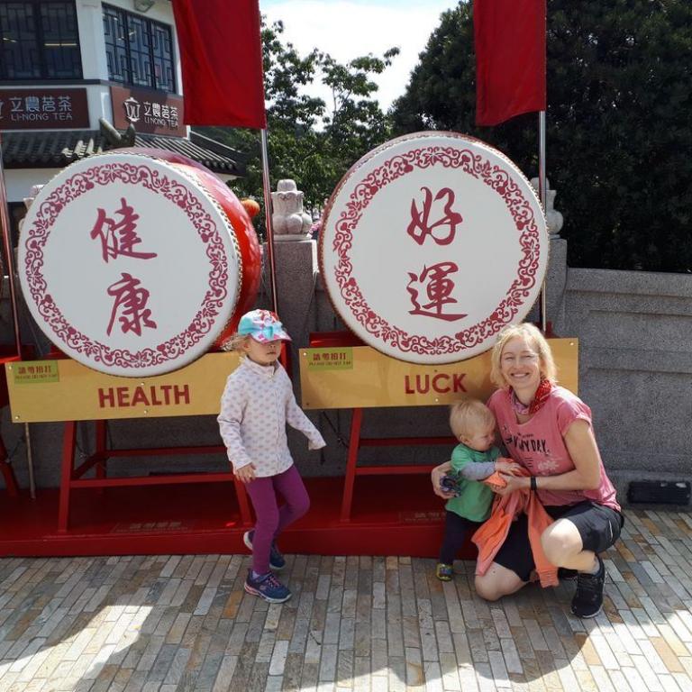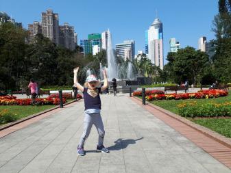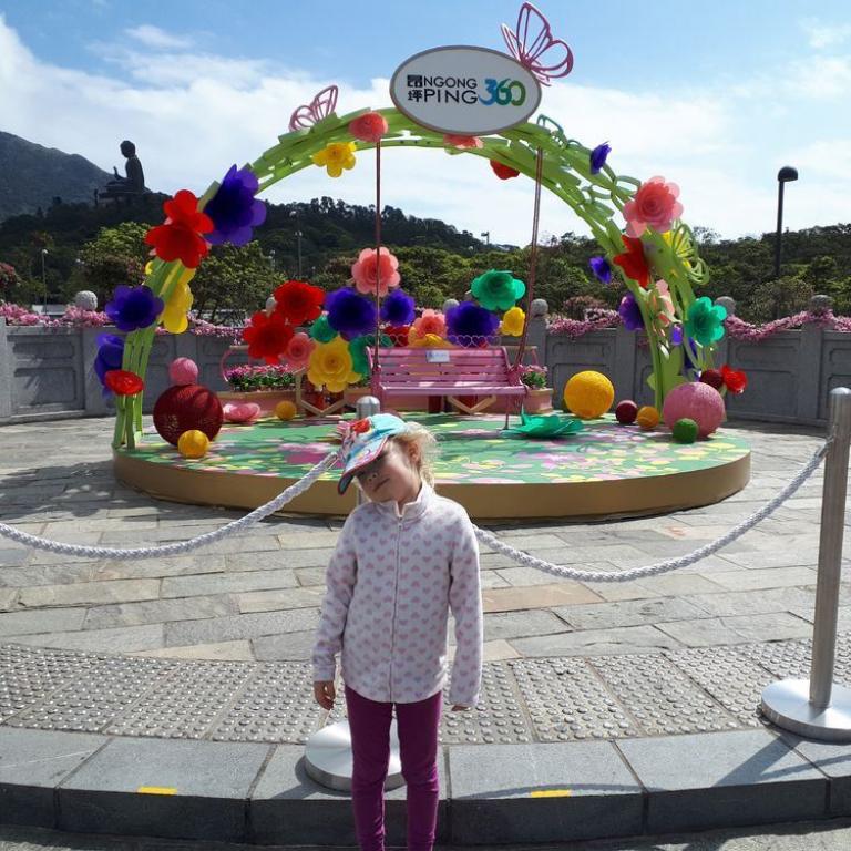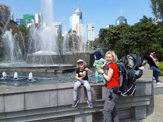 Natürlich besuchten wir auch das bunte Po Lin Kloster mit seinen Gebetstempeln. Es roch nach Weihrauch und viele Gläubige beteten zu Buddha. Später gingen wir noch im Ngong Village in ein kleines Restaurant zum Essen, bevor wir mit der Gondel die atemberaubende Fahrt nach unten antraten. Mit dem MTR fuhren wir zur Central Station zurück, von wo wir noch in den Hong Kong Park marschierten, wo Emma einen Spielplatz testen durfte :-) Zurück im Hotel fielen unsere Zwerge ins Bett und schliefen glücklich nach dem anstrengenden Tag ein...