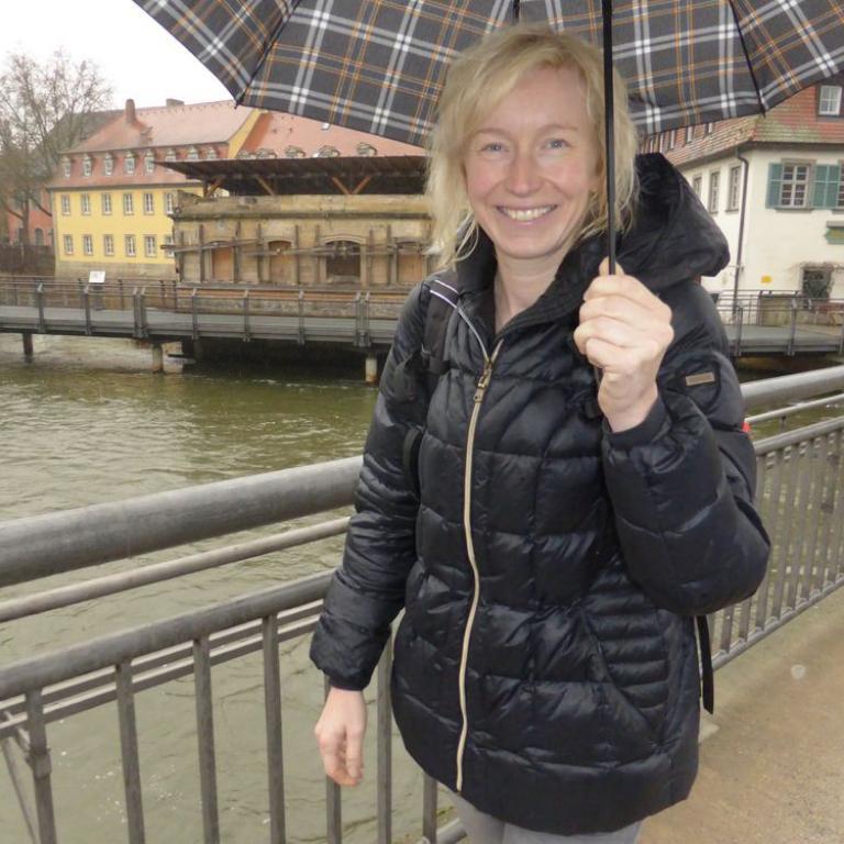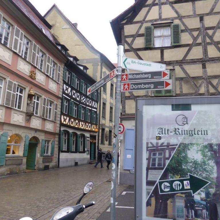 Nach dem Frühstück fuhren Brigitte, Emma und ich in Richtung Bamberg. Die kleine Maus verschlief die Fahrt und auch den Stau :-) Um halb 11 erreichten wir Bamberg bei leichtem Regen und parkten in der Nähe der Touristeninformation, wo wir uns mit den Tichys und der kleinen Johanna trafen. Wir marschierten zuerst zum gotischen "Alten Rathaus" inmitten der Regnitz. Zuerst kehrten wir in einem gemütlichen Cafe ein, wo wir eine Kleinigkeit aßen und ein Rauchbier testeten. Ok, das Rauchbier fiel bei den Testern Christoph und Winklworld durch.