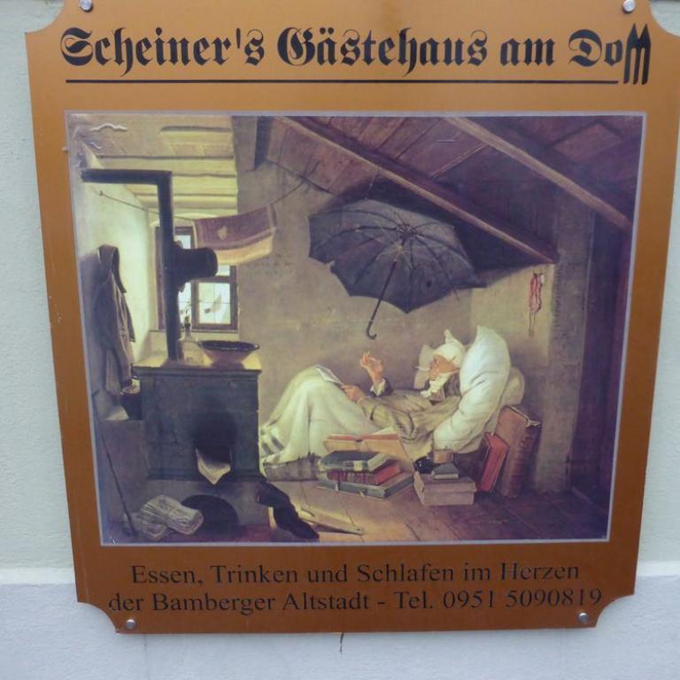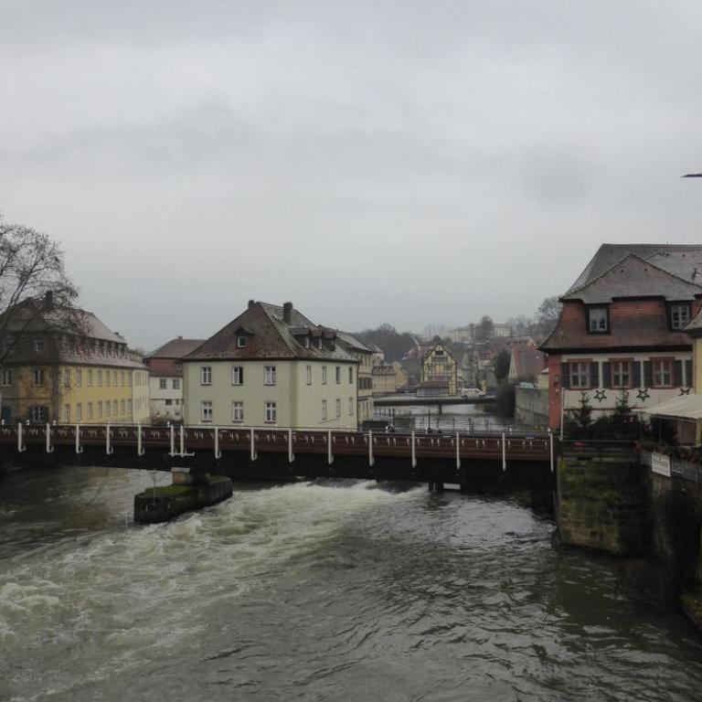 Bevor es weiter ging, kehrten wir noch im Restaurant "Schreiners" ein, wo es Krustenbraten mit Knödel gab. Weiter marschierten wir zur Unteren Brücke am Alten Rathaus, wo wir einen herrlichen Blick auf die Fachwerkfassaden, hohe Giebeldächer, Holzbalkone und winzige Gärten der Fischer- und Schifferhäuser hatten. Davor liegen malerisch kleine Boote vertäut.