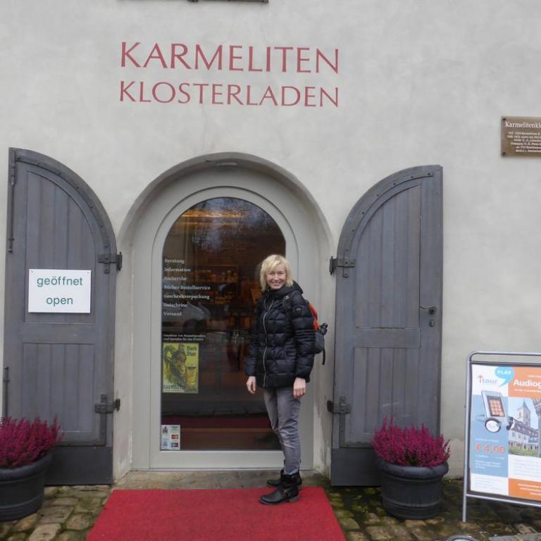 Natürlich besuchten wir den Karmelitenklosterladen mit seinen Biervarianten :-) Aber auch der Kreuzgang des Klosters war sehenswert. Die romanischen Bögen und Säulen umschließen einen kleinen Rosengarten.