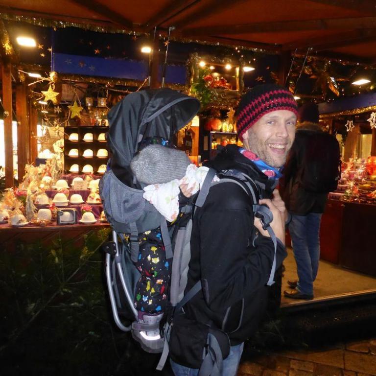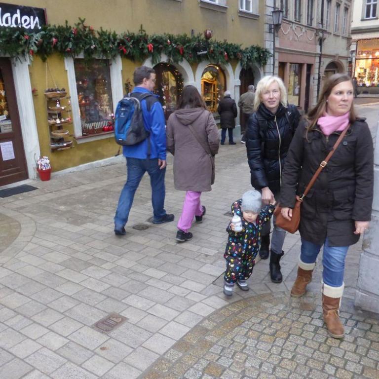 Nach der Stärkung durften die Kleinen in die Kraxn und wir marschierten vom alten Rathaus bis zur Oberen Pfarre, einer Kirche im Barockstil aus dem 18. Jahrhundert. Unser Weg führte uns durch kleine Gassen und liebevoll, weihnachtlich, geschmückte Schaufenster.