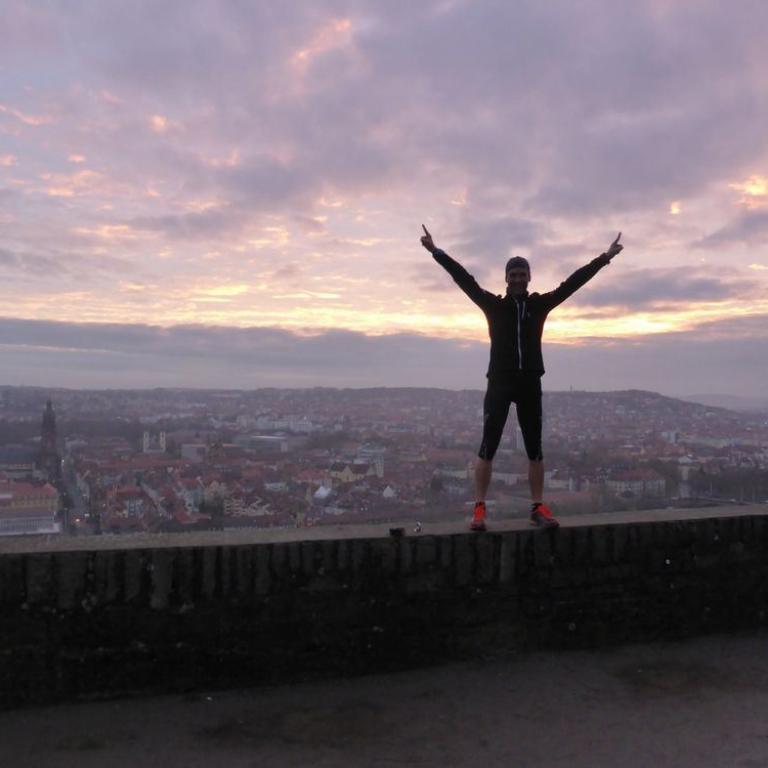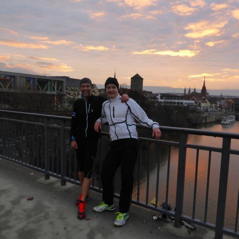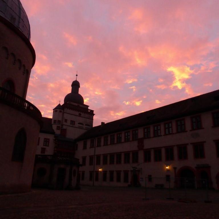 Um schon mal einen ersten Eindruck von Würzburg zu bekommen, starteten Christoph und ich um halb 8 zum Morgenlauf. Zuerst liefen wir zur Festung Marienberg, wo wir einen herrlichen Sonnenaufgang beobachten konnten. Weiter sausten wir hinunter bis zur Alten Mainbrücke und am Mainufer entlang bis wir wieder einen steilen Weg zur Festung hochliefen. Nach einer Stunde erreichten wir wieder unser Hotel wo wir nach der nötigen Dusche zum Frühstücken gingen. Heute erlebten wir das Gegenteil von Gestern im Restaurant. Unsere heutige Bedienung war sehr freundlich und nett und das Frühstücksbuffet lecker und vielfältig.