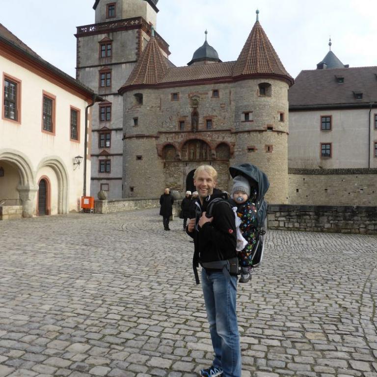 Mit Johanna und Emma in der Kraxn bewaffnet marschierten wir als erstes zur Festung Marienberg aus dem 8 Jahrhundert. Wir besichtigten die Festung und Kirche von innen und gingen dann an den Mauern entlang um die Festungsanlage. Hier hatten wir immer wieder einen herrlichen Blick auf die Altstadt von Würzburg, den Main, die vielen Kirchen und umliegenden Weinberge.
