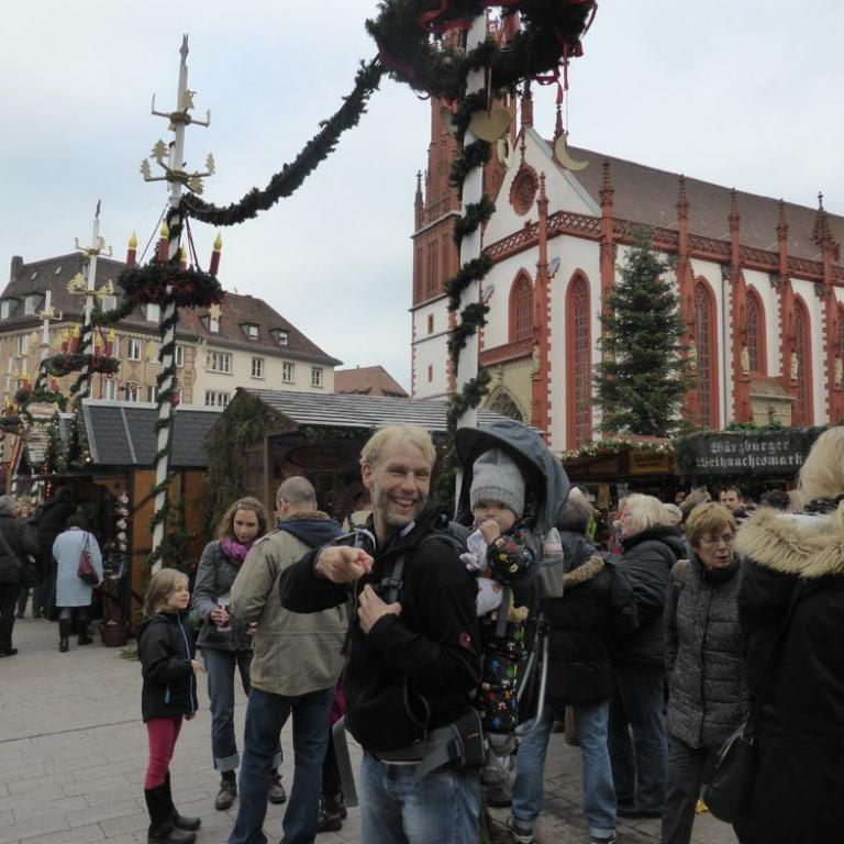 In einem Kinderladen kauften wir für Emma ein und erst dann marschierten wir zum Juliusspital, einem Seniorenstift, wo wir den Innenhof besichtigten. In einem Cafe in der Nähe gab es Kartoffelsuppe und Nußschnecke.