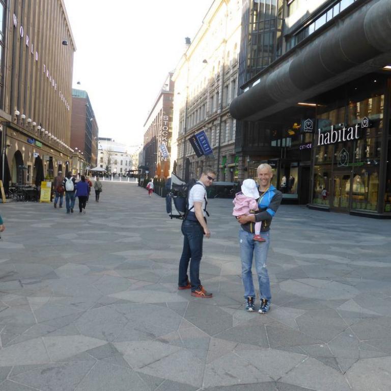 Winkltours war wieder in Action. Es standen 4 Städte zur Auswahl: Kotor, Rotterdam, Riga und Helsinki. Sieger wurde die finnische Hauptstadt Helsinki. So fuhren Brigitte und ich Donnerstagfrüh nach München zum Flughafen, nachdem wir unsere kleine Maus bei Opa und Omi abgeliefert hatten. Mit einem weinenden Auge verabschiedeten wir uns von unserem Engel, aber Emma war in guten Händen und wir wussten das sie auch ohne uns riesig Spaß hatte. Wir hatten nur Rucksäcke dabei und mussten somit keine Koffer abgeben. Flugtickets hatte ich am Tag davor online ausgedruckt und konnten deshalb gleich zum gemütlichen Teil übergehen. Wir trafen uns mit den Anderen im Airbräu, wo schon viele Väter den Vatertag feierten. Mit dabei waren dieses Mal unsere Freunde die Tichys mit der kleinen Johanna und Sylvi, Rainer, Angie und Sabine. Nach 2 Bier und Weißwürstl sah die Welt schon mal viel lustiger aus :-) Wir marschierten dann zum Gate und kurz darauf saßen wir auch schon im Flieger von Finnair. Nach 2 Stunden 20 Minuten Flug landeten wir mit einer Stunde Zeitverschiebung um 15:40 Uhr in der finnischen Hauptstadt. Das Wetter war traumhaft. Sonne, blauer Himmel und 22 Grad, mehr geht nicht. Unkompliziert war der Transfer in die Stadtmitte. Der Finnairbus stand direkt vor dem Terminal und brachte uns innerhalb 30 Minuten bis zum Hauptbahnhof im Zentrum. Nur ein paar Gehminuten entfernt fanden wir unser 4 Sterne Hotel das Radisson Blue. Die Zimmer waren super geräumig und schön.