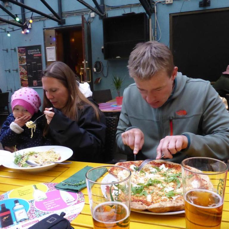 Um dreiviertel 9 trafen wir uns dann vor dem Hotel und die Stadtbesichtigung konnte bei angenehmen Temperaturen, blauem Himmel und Sonnenschein beginnen. Unser erstes Ziel war die im Norden des Hotels liegende Felsenkirche. 1968 wurde mit Dynamit ein großes Loch in einen Felsenhügel gesprengt und so entstand ein Gotteshaus, das unter der Erde bzw. im Felsen liegt. Sie wäre von innen auch sehr sehenswert, war aber leider geschlossen. Auch unser nächster Punkt, das Olympiastadion war leider ebenfalls, dank Renovierungsarbeiten, geschlossen. 1938 wurde die funktionalistische Sportarena fertiggestellt, aber der Zweite Weltkrieg kam dazwischen und somit wurden die Olympischen Spiele erst 12 Jahre später auf finnischem Boden abgehalten. Vom Olympiaturm, sofern er offen hat, wäre der Ausblick über die Stadt grandios. Und auch die nächsten beiden Ziele, der Städtische Wintergarten und Vergnügungspark Linnanmäki öffnete erst am Nachmittag. Aber auch außerhalb des Wintergartens konnten wir die Grünanlage mit Blick auf einen See in der Sonne genießen. Einige Straßen weiter besichtigten wir die Kallio Kirche, die tatsächlich auch für Besucher geöffnet war. Imposant steht die Kirche aus grauem Granit und mit dem 65 m hohen Kirchturm auf einem Hügel. 1912 wurde das Gotteshaus fertiggestellt. Auf direktem Weg marschierten wir wieder in Richtung Süden, bestaunten nochmals den Dom und die Aussicht über den Senatsplatz bis zum Hafen und den darin vor Anker liegenden Kreuzfahrtschiffen. Auf den Treppen vor dem Dom konnte man es in der angenehmen Sonne aushalten und einfach nur die vorbeigehenden Leute beobachten. Im ältesten Cafe direkt am Hafen kehrten wir ein und mit einem Bier, die Mädels mit Sekt gestärkt, konnte die Sightseeing Tour weitergehen :-) Unser nächster Anlaufpunkt war die Deutsche Kirche, ein neogotisches Backsteingebäude, das 2014 seinen 150. Geburtstag feierte. Kurz dahinter auf einem kleinen Hügel fanden wir dann das Observatorium aus 1834, das eines der ältesten der Welt ist. Von hier hatten wir einen schönen Ausblick auf den Hafen, Dom, Uspenski Kathedrale, Skywheel und Olympiaterminal. Für die kleine Johanna fanden wir einen Spielplatz, den sie auch gleich ausgiebig nutzte. Wir kauften währenddessen Karten für die Schnellfähre am morgigen Tag nach Tallinn, der Hauptstadt Estlands. Für 55 Euro und 1 Stunde 40 Minuten einfache Fahrt wollten wir am Samstag auch noch die estländische Stadt mitnehmen. Am Hafen schlenderten wir durch die alte Markthalle aus 1889 und probierten Lachsbrötchen und Brennnesselbier.