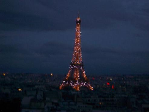 Nun ist es schon wieder fast 10 Uhr geworden und wir besichtigen den Triumphbogen. Wieder mal geht es einige Treppen nach oben. Die Aussicht ist wieder herrlich, aber leider ist es immer noch viel zu hell. Um 10 Uhr fängt der Eifelturm zu blitzen an, was ein schönes Schauspiel darstellt.