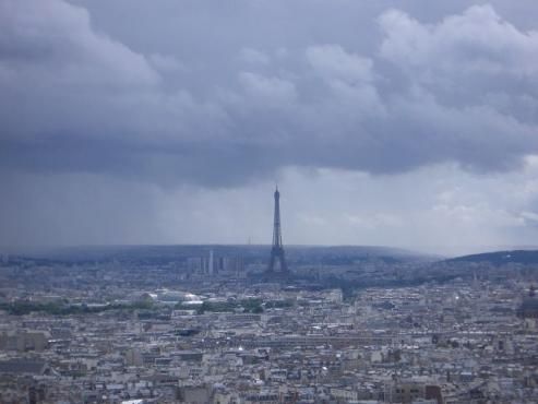 An der nächsten Haltestelle steigen wir aus und gehen zur Kirche Sacre Coeur. Sie liegt hoch auf einem Berg, von dem aus man wieder ganz Paris überblicken kann. Die Kirche selbst ist von aussen herrlich, aber innen relativ schlicht eingerichtet. Wir steigen (Eintritt 5 Euro) auf die Kuppel der Kirche. Eine Wendeltreppe führt hinauf, Platzangst darf man nicht haben. Die Aussicht ist klasse, man sieht wieder den Eifelturm aber auch das Centre G. Pompidou ist zu erkennen.