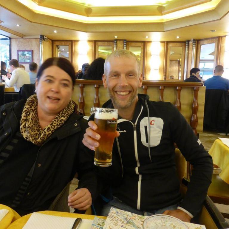 Zur unchristlichen Zeit um 6 Uhr klingelte der Wecker. In Laufklamotten wollten Brigitte und ich die Stadt unsicher machen. Bei kühlen Temperaturen liefen wir in Richtung Seine. Fast kein Mensch war auf den Füßen, nur einige Obdachlose lagen auf der Straße umher. Wir Beide umrundeten den Louvre und genossen die menschenleeren Straßen. Nach knapp einer Stunden Lauf erreichten wir wieder das Hotel, wo wir uns nach der nötigen Dusche zum Frühstück mit den Anderen trafen. Nach der Stärkung starteten wir auch schon den ersten Stadtrundgang. Eigentlich stand der Louvre auf dem Plan, aber da bis Nachmittag kein Regen erwartet wurde, entschlossen wir uns zu einem Fußmarsch über die Brücke Pont Neuf und weiter an der Seine entlang zur Kirche Notre Dame. Zuerst besichtigten wir das Meisterwerk der Gotik von innen, bevor wir dann vom Turm einen wunderschönen Blick auf die Wasserspeier und gesamte Stadt genießen konnten. Danach fuhren wir mit dem Hop On Hop Off Bus L`Open Tour auf der ersten, der grünen Route. Entlang der Champs Elysees gelangten wir zum Triumphbogen. Von hier fuhren wir weiter zum Eifelturm. Dort aßen wir zu Mittag. Eine halbe Heineken Bier bekamen wir für den Schnäppchenpreis von 12,50 Euro, dafür war das Sandwich für 8,50 Euro fast geschenkt. Wir marschierten dann zum Palais de Challiot von wo wir einen herrlichen Blick auf das 300 m hohe Wahrzeichen der Stadt, den Eifelturm, hatten. Wir bestaunten das Bauwerk nur von unten und fuhren mit dem Bus weiter durch Paris. An der Plaza de Opera stiegen wir am späten Nachmittag wieder aus und machten es uns in einem der vielen Cafe`s gemütlich. Unter einem Heizstrahler war es auch im Freien wonnig warm. Zusammen genossen wir Rotwein, führten eine lustige Unterhaltung und beobachteten die vorbeigehenden Passanten. Zurück im Hotel hielten wir uns nicht lange auf. Weiter marschierten wir zum nahegelegenen Hardrock Cafe, wo wir uns leckeren Burger und Bier bei guter Rockmusik einverleibten. Nach dem anstrengenden, aber aufregenden Tag fielen alle müde ins Bett.