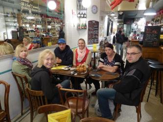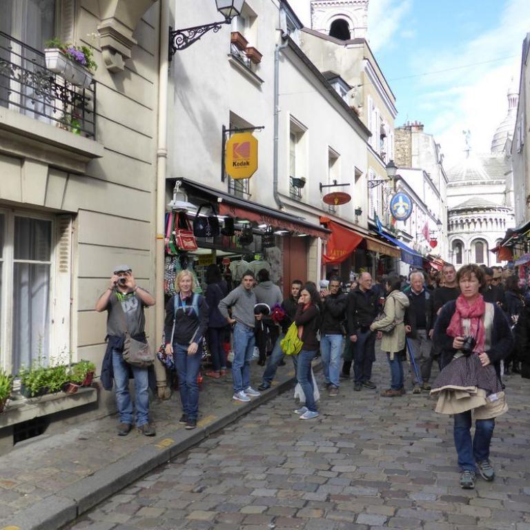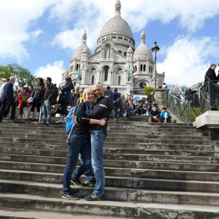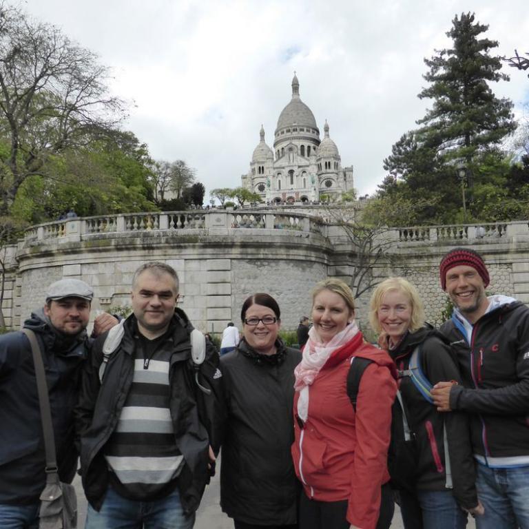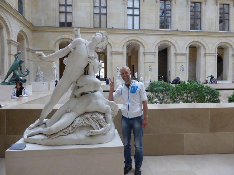 Auch am zweiten Morgen in Paris liefen Brigitte und ich um viertel nach 6 durch die leeren Gassen von Paris. Diesmal ging es zur Bastille und wieder zur Seine und zurück ins Hotel. Leider regnete es leicht. Zusammen suchten wir uns später mit den Anderen eine gemütliche Brasserie zum Frühstücken, die wir auch in einer nahegelegenen Gasse fanden. Nach einer Stärkung gingen wir zum Louvre, wo wir eine lange Schlange vor der Kasse vorfanden. Bei strömenden Regen warteten wir und beobachteten die unterschiedlichen und interessanten Leute, bis wir endlich durch die Glaspyramide ins Innere des Museums gelangten. Tausende Menschen tummelten sich hier um das weitläufigste Museum der Welt zu besichtigen. Unser erster Weg führte uns zur Mona Lisa, die umlagert von Kunstkennern, wie auch Möchtegernkunstkennern, wurde. Auch wir gehörten zur Rubrik "Möchtegern". Wir besichtigten viele Bilder aus den verschiedensten Epochen der Kunstgeschichte. Obwohl wir so gut wie keinen der Künstler, wie auch deren Bilder kannten, waren wir von den Gemälden fasziniert. Wir bestaunten Bildhauerkunst aus dem Mittelalter, Statuen aus dem 18. Jahrhundert, Kronschätze vom Sonnenkönig Ludwig XIV, Artefakte aus der griechischen, etruskischen und ägyptischen Geschichte, den Sarkophag von Tutanchamun, die Statue der Maria Magdalena, die Statue von Cäsar und noch viele kunstgeschichtliche Gegenstände aus den verschiedensten Epochen. Nach 4 Stunden und gefühlt 100 Kilometer geballter Kunst entschieden wir uns dem Museum den Rücken zu zukehren und uns zuerst wieder zu stärken. Am Plaza de la Opera fanden wir ein gemütliches Lokal wo es einen leckeren Salat mit Bier gab. Auch zu regnen hatte es mittlerweile aufgehört und teilweise blitzte schon der blaue Himmel durch die Wolken. Mit dem Hop On Hop Off Bus auf der gelben Linie fuhren wir vorbei an Kirchen, Opernhäusern, bunten Restaurants, kleinen Gässchen und dem berühmten Moulin Rouge bis zum Fuße des Montmatre, wo auf dem Gipfel die Wahlfahrtskirche Sacre Coeur aus dem Jahr 1870 thront. Über viele Treppen stiegen wir nach oben. Immer mehr verzogen sich die Wolken und die Sonne begrüßte uns auf dem Hügel. Je höher wir kamen, desto schöner wurde der Blick auf die Stadt. Auch die Kirche selbst war sehr sehenswert. Das Montmatre Viertel bot viele bunte und gemütliche Restaurants und Geschäfte. Am Place du Tertre konnte man sich von mehr oder weniger begabten Künstlern porträtieren lassen. Wir entschieden uns für ein Glas Wein in einem der gemütlichen Cafe`s. Mit fast dem letzten Bus der gelben Linie fuhren wir die Tour zu Ende und gingen noch ein paar Meter zurück ins Hotel, wo wir uns kurz frisch machten und dann in die Gasse Montorgueil gingen, wo sich unzählige Restaurants befanden. Wieder suchten wir uns eine gemütliche Kneipe mit leckerem Essen und gutem Wein. Nach einem lustigen Abend fielen wir geschafft von dem langen, extrem kulturellen Tag ins Bett.