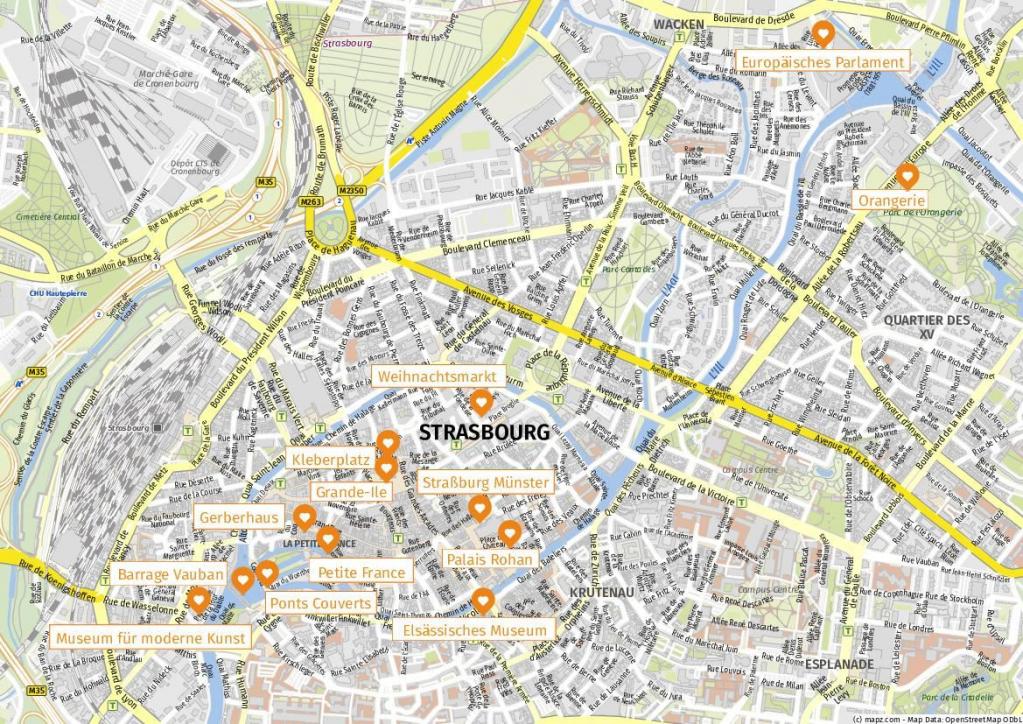 - 1. Karte der Sehenswürdigkeiten in Straßburg