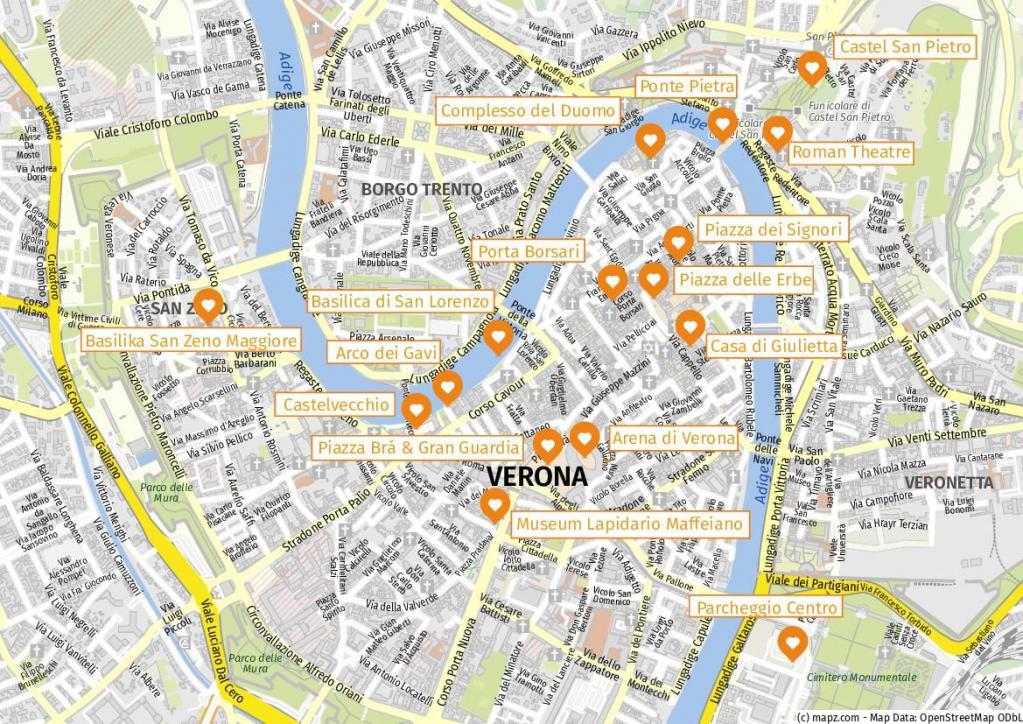 - 1. Karte der Sehenswürdigkeiten in Verona