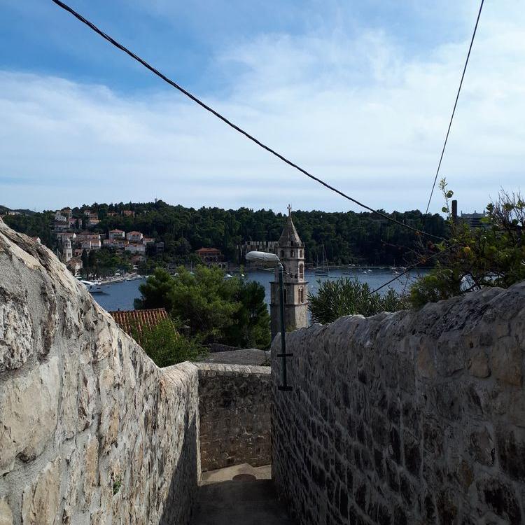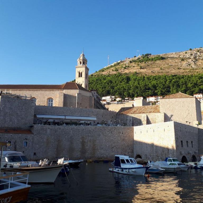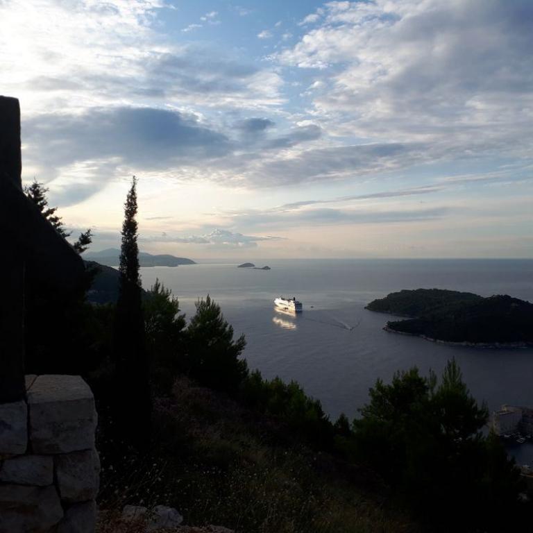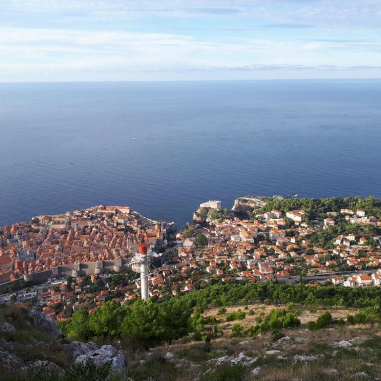 Noch vor Sonnenaufgang liefen Brigitte und ich los um den Hausberg Dubrovniks, den Srd mit 412 m zu erklimmen. Ein Kreuzweg schlängelte sich bis zum Gipfel, von wo wir eine traumhafte Aussicht auf "Königsmund" hatten. Den gleichen Weg liefen wir zurück und kamen genau richtig zum Frühstück, das Dani hergerichtet hatte. Nach der Stärkung und einer dringend notwendigen Dusche marschierten wir in Richtung Altstadt.