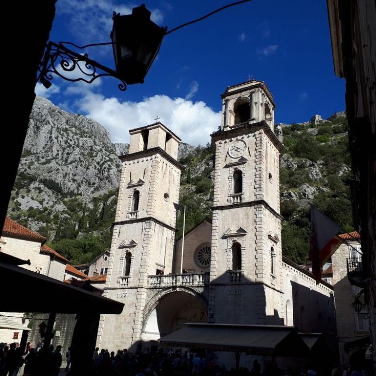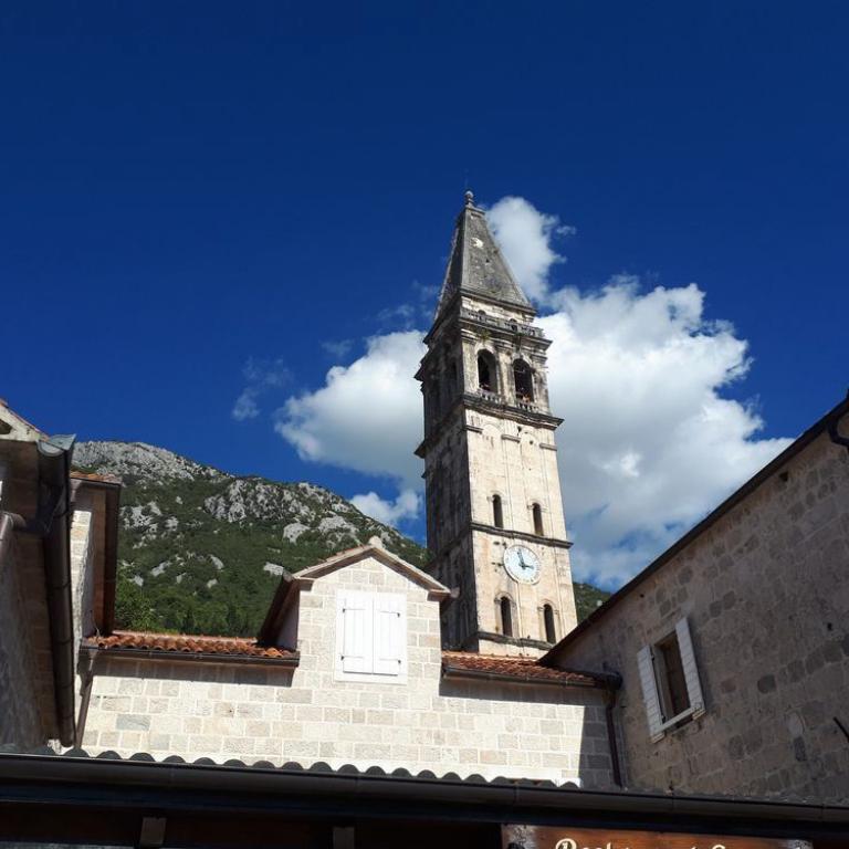 Unsere Weiterfahrt führte uns nach Perast, einem kleinen idyllischen Örtchen unterhalb des St. Elias Bergs. Zu Perast gehören die beiden kleinen Inseln St. Georg und St. Marien auf dem Felsen. Auf der einen Insel liegt der Friedhof des Ortes, die andere ist mit ihrer Kapelle ein bekannter Wallfahrtsort. Wir schlenderten durch den Ort und stiegen über viele, teils brüchige Treppen auf den Kirchturm der orthodoxen Kirche des Ortes. Da der Tag schon fortgeschritten war, fuhren wir weiter zu unserem eigentlichen Ziel, Kotor.