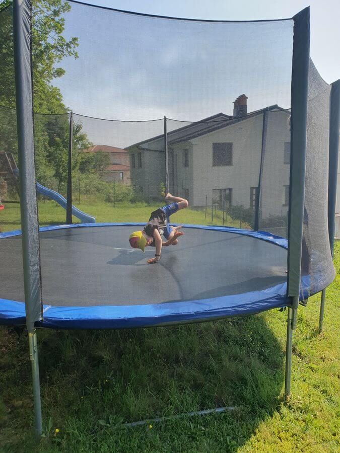 Leider war ich immer noch erkältet und konnte in der Nacht kaum schlafen. Erst am frühen Morgen fand ich etwas Ruhe. Die Kinder sprangen auf dem Trampolin und badeten im Pool. Irgendwann quälte ich mich schließlich aus den Federn.