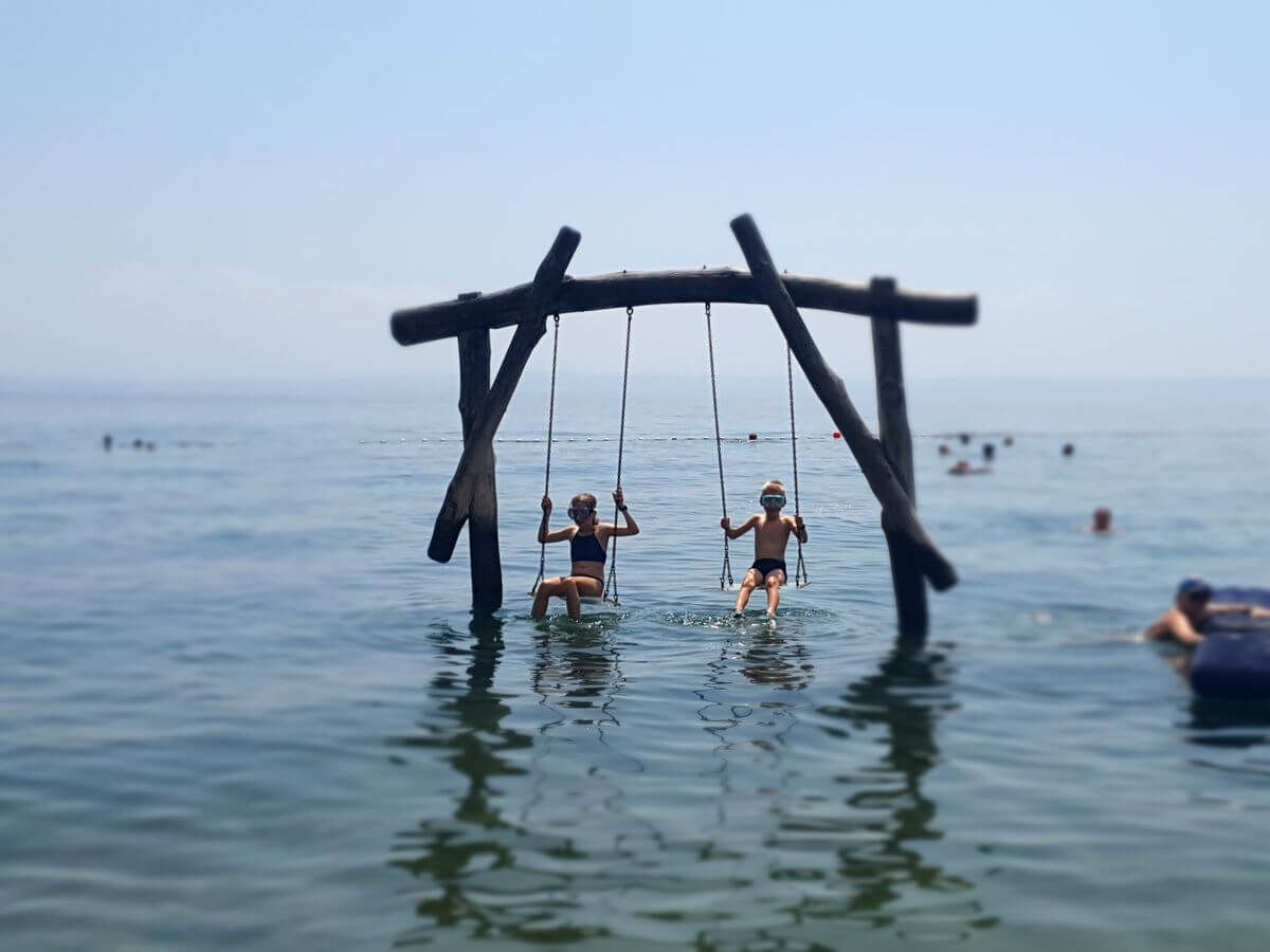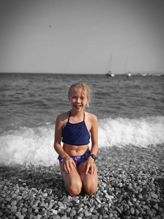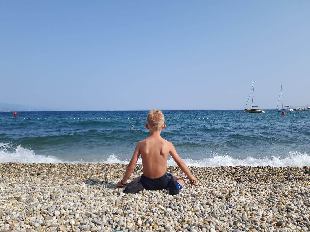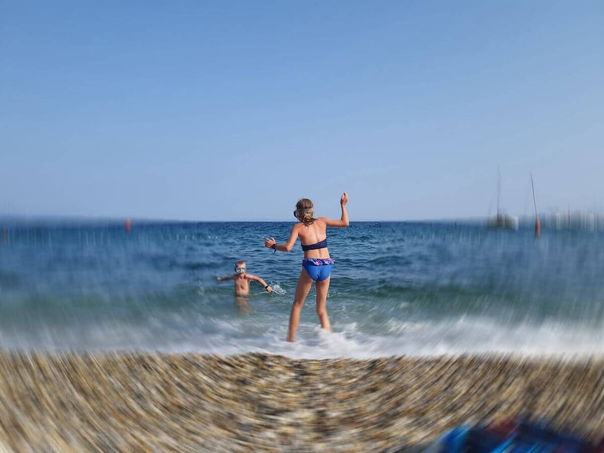 Der Strand besteht größtenteils aus Kies, was das Wasser außergewöhnlich sauber macht. Durch den relativ flachen Einstieg eignet er sich gut zum Baden, auch für Familien. Im Hintergrund sorgen die grünen Berghänge für eine beeindruckende Kulisse – eine Mischung aus Meer und Natur, die typisch für diese Region ist. Wir gingen schnorcheln und plantschten mit unseren Luftmatratzen. Nur das Parken war etwas teuer: Direkt am Campingplatz kann man sein Auto für 15 Euro abstellen.
