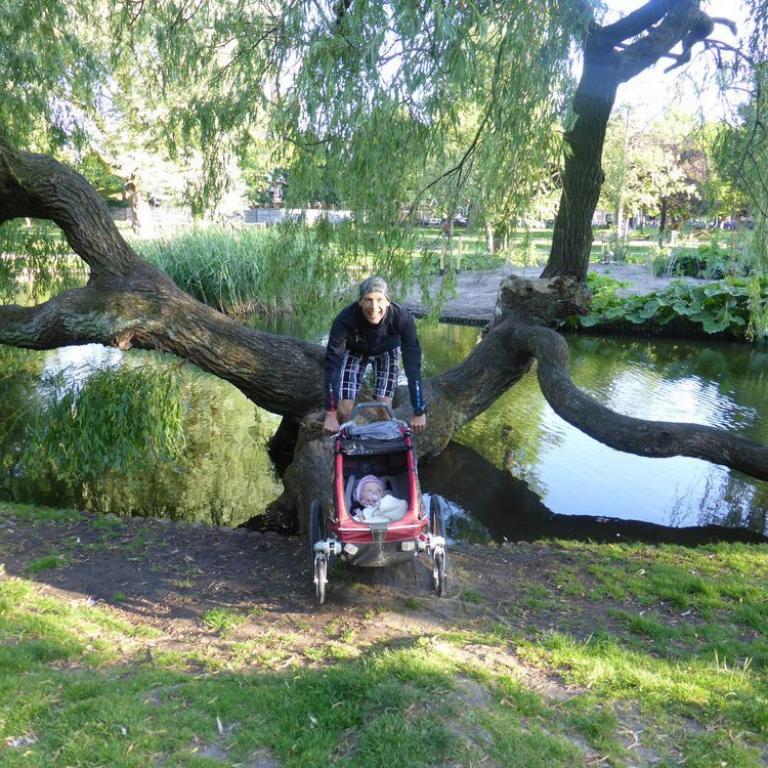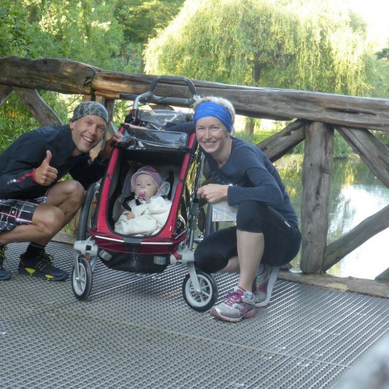Da Emma um halb 7 aktiv wurde, entschieden wir uns zum Sightseeing Morgenlauf. Mit dem Babyjogger bewaffnet, liefen wir an der Singelgracht bis zum Heinekenmuseum, dass wir nur von außen begutachteten. Unser nächstes Ziel war der Sarphatipark, eine grüne Lunge mitten in Amsterdam. Hier fanden wir ein kleines "Boot Camp" wo wir uns an Klimmzugstangen versuchten. Natürlich bauten wir auch noch einige Lauf ABC Übungen mit ein. Nach knapp einer Stunde erreichten wir wieder das Hotel, wo wir duschten, Frühstückten und Emma noch ein kleines Nickerchen halten durfte.