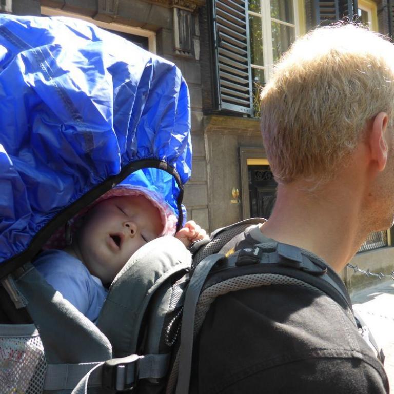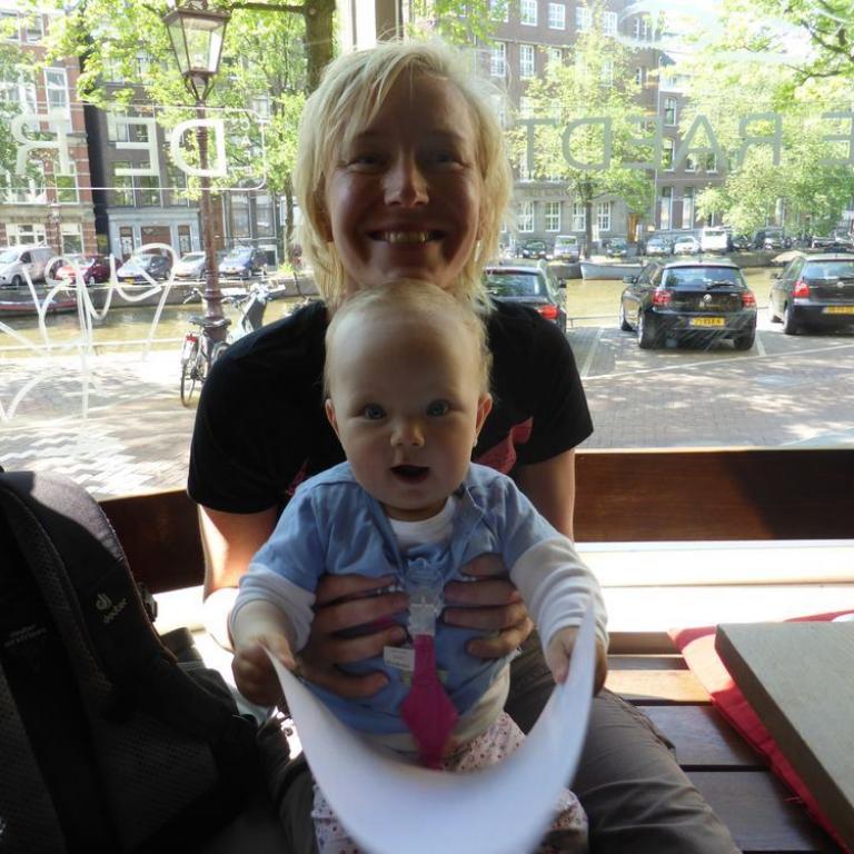 Um 10 Uhr konnte es weiter gehen. Emma durfte in die Kraxn und ab ging es zur Sightseeing Tour durch Amsterdam. Die kleine Maus hatte den größten Spaß auf meinem Rücken. Sie konnte mich an den letzten Haaren ziehen :-) und sah natürlich viel von der bunten Stadt und Leute. Als erstes marschierten wir zu einem Kunstmuseum, dann Botanischen Garten und weiter zu einem Jüdischen Historischen Museum. Dann ging es am Rembrandtmuseum vorbei, weiter durch das Rotlichtviertel in die Wallen, das Mittelalterliche Zentrum Amsterdams. Hier bestaunten wir das älteste, weltliche Gebäude Amsterdams, das De Waag, eine ehemalige Stadtwaage, heute Institut für neue Medien und Caferestaurant.
