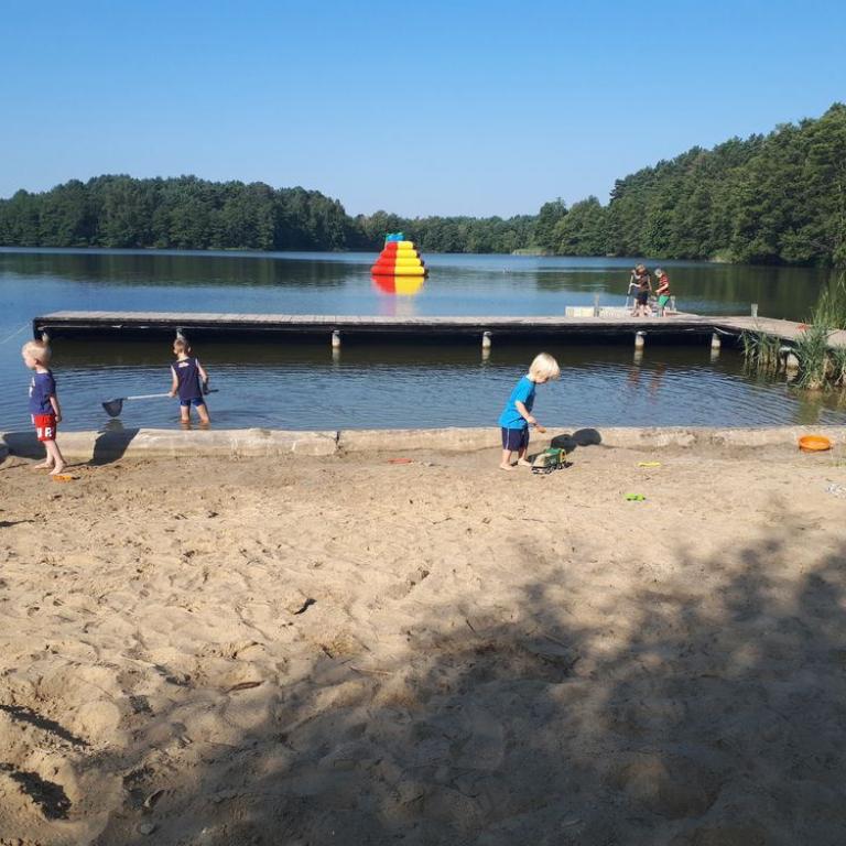 Auch heute war das Wetter wieder traumhaft schön und sehr warm. Teilweise hatten wir über 30 Grad. Nach dem Frühstück sauste die Familie Winklmeier mit dem MTB los. Emma an der Stange und Timi im Babyjogger. Unser eigentliches Ziel wäre Waren an der Müritz gewesen, aber die sandigen Wege durch den Nationalparkwald bremsten uns stark und teilweise mussten wir schieben. Somit entschlossen wir uns eine kleinere Runde zu fahren. Am Granziner See machten wir Pause und sprangen in das kühle Nass. Auf dem sonnigen Steg wurden wir schnell trocken und sahen den vielen Kanufahrern zu, wie sie in die kleine Havel einbogen. Dieses Flüsschen verband viele Seen miteinander. In den nächsten Jahren wollen wir auch eine mehrtägige Bootswandertour durch die Mecklenburgische Seenplatte unternehmen. Unsere MTB Fahrt ging zu einem kleinen Fischrestaurant, wo wir uns mit frischen Fischsemmeln und kühler Radler stärkten. Nach ca. 25 Kilometern erreichten wir wieder unseren Campingpatz. Ganz klar gingen wir nochmals zum Baden und genossen das schöne Sommerwetter am Strand. Am Abend kochten wir fleißig mit dem Gaskocher. Müde fielen die Zwerge ins Bett und auch Brigitte und ich hielten uns nicht mehr allzu lange...