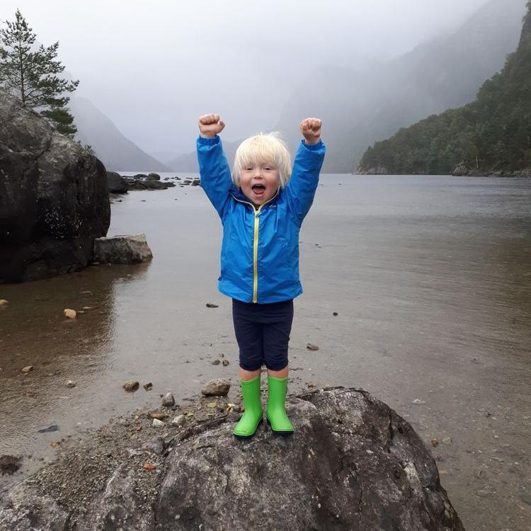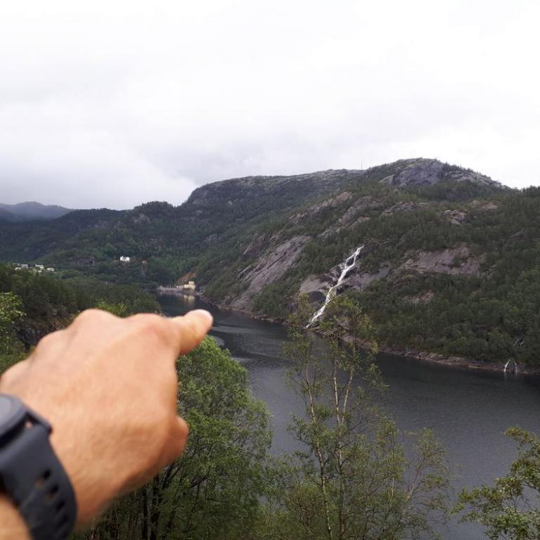 Wasserfälle, Fjorde und Abendlauf: Nach dem Frühstück packten wir unsere Siebensachen ins Auto. Es war jeden Tag eine Herausforderung alles geordnet zu stapeln um auch später wieder alles zu finden :-) Unser erstes Ziel war das Küstenstädtchen Sand am Sandsfjorden. Um dorthin zu gelangen mussten wir den Josenfjord mit der Fähre überqueren. Nach ca. 80 km erreichten wir das Örtchen Sand. Da Timi im Auto eingeschlafen war, marschierten Emma und ich zum Lachsstudio am Wasserfall Sandsfossen und Brigitte blieb bei Timi. Das Städtchen liegt inmitten eines Landstrichs voller Schluchten und einsamer Seen, voller Wasserfälle und versteckter Fjorde. Ein noch weitgehend unentdecktes Stück üppiger Natur, durch das der wohl lachsreichste Fluss Südnorwegens fließt. Emma und ich schlenderten zum Hafen und konnten uns gerade noch vor dem Regen in das kleine "Fargeriet Kafe" retten. Wir aßen eine Lachssemmel und tranken einen Apfelsaft. Als es zu regnen aufhörte, marschierten wir zurück zum Auto. Unser kleiner Zwerg war mittlerweile auch wieder wach. Da es wieder zu regnen begann, fuhren wir weiter und umrundeten den Sandsfjorden bis nach Ropeid. Hier genossen wir die Aussicht, bevor wir bis zum Wasserfall Svandalsfossen kamen. Wir parkten unser Auto und gingen direkt zum Wasserfall. Wir wurden pitsch nass durch das spritzende Wasser, aber wir hatten riesig Spaß dabei. In Sauda buchten wir eine Hütte für 800 NOK (80 Euro) im Sauda Fjord Campingplatz. Die Hütte war geräumig und gemütlich. Draußen regnete es in Strömen. Ich wollte das schlechte Wetterfenster natürlich für einen Lauf ausnutzen :-) Ich lief bzw. ballerte eine kleine Bergstraße bis zu einem kleinen Bergdörfchen mit urigen Häusern mit Grasdächern hoch. Auf selber Strecke ballerte ich auch nach unten. Teilweise kam die Sonne heraus und ich sah einen herrlichen Regenbogen. Die Aussicht auf den Saudafjord war traumhaft. Insgesamt war ich 8 km mit 400 Hm unterwegs. Nach mir lief Brigitte eine Regenrunde, während ich mit den Zwergen Nudeln kochte und Salat herrichtete. Den Abend verbrachten wir bei einem gemütlichen Film auf der Couch