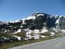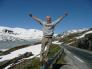 Wieder zurück an Land fuhren wir weiter auf der "Goldenen Route". Von Geiranger über Adlerweg und Trollstigen nach Andalsnes führt diese Route. Der Adlerweg führt gleich hinter Geiranger am Ostufer über 11 enge aber gut befahrbare Kehren, vorbei am Aussichtspunkt "Adlerblick" hinauf in das 700 m hohe Fjell, wo wir nach ca. 25 km Eidsdal erreichten. Mit der Fähre ging es dann über den Norddalsfjord und weiter nach Norden auf der Rv 63 bis wir den Trollstigen, einen 850 m hohen Pass erreichten. Leider erkannten wir zu spät die Parkplätze und wurden schon wieder die haarsträubenden Serpentinen in das Isterdal hinunter geschoben. Die Straße wurde nach 20 Jahren Bauzeit im Jahr 1936 fertig gestellt. Unter der Fahrt und von unten konnten wir aber trotzdem noch super schöne Fotos machen.
