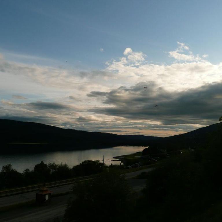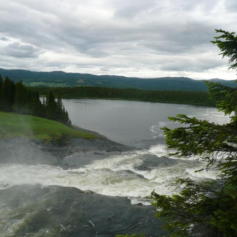 Nach ca. 70 Kilometer erreichten wir die eigentlich nicht vorhandene Grenze und stellten fest, dass wir nun in Schweden waren. Auf der E14 ging es weiter ostwärts ins Jämtland. Um 20 Uhr besichtigten wir noch den imposanten Wasserfall Tännfossen (60 m breit und 37 m stürzt er in die Tiefe). Wir waren um diese Zeit die einzigen Besucher. Weiter fuhren wir dann bis Are, einem Winterskiort wo wir eine wunderbare Hütte direkt am See für 400 Schwedische Kronen (ca. 45 Euro) bekamen. Es gab noch leckeres Abendessen und ein Glas Wein.