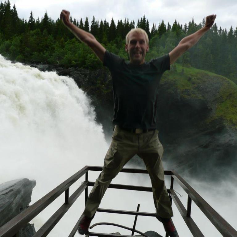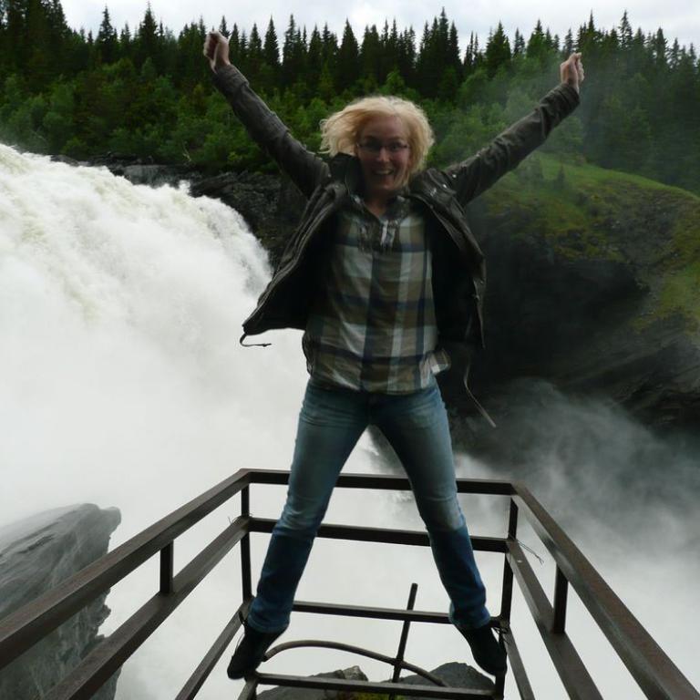 Nach ca. 70 Kilometer erreichten wir die eigentlich nicht vorhandene Grenze und stellten fest, dass wir nun in Schweden waren. Auf der E14 ging es weiter ostwärts ins Jämtland. Um 20 Uhr besichtigten wir noch den imposanten Wasserfall Tännfossen (60 m breit und 37 m stürzt er in die Tiefe). Wir waren um diese Zeit die einzigen Besucher. Weiter fuhren wir dann bis Are, einem Winterskiort wo wir eine wunderbare Hütte direkt am See für 400 Schwedische Kronen (ca. 45 Euro) bekamen. Es gab noch leckeres Abendessen und ein Glas Wein.