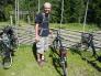 Wir fuhren dann durch bis zum Siljan See, der eingerahmt von blauer Bergkulisse ist. Schwedens Volkskultur in Bilderbuchqualität ist am Siljan zu Hause. Wir besuchten die Ortschaft Rättvik, wo wir uns nach einem Kaffee, Fahrräder ausliehen. Wir wollten eine Tour auf die Alm zur Sennerei Karl Töväsens fäbod machen. Zuerst ging es am Ufer des Sees entlang, bis wir Richtung Osten abbogen, wo es stetig nach oben ging, was mit einem 3 Gang Rad nicht so einfach war. Nach insgesamt 14 Kilometern erreichten wir die Sennerei, die aus vielen alten Holzgebäuden bestand. Wir kauften uns einen Saft und Schüttelbrot mit Käseaufstrich. Hier gab es Hühner, Schweine und Hasen. Die Sennerei wird noch immer bewirtschaftet wie vor 100 Jahren.