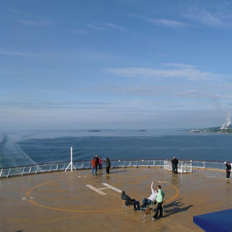 Um 7 Uhr weckte uns das Handy. Die Sonne schien herrlich durch das Bullauge. Wir fuhren anscheinend schon im Oslofjord, da Land auf unserer Seite zu sehen war. Wir gingen zuerst zum Frühstücken (Croissant und Schokolade) und dann auf Deck wo wir die Sonne und den Fjord genossen. Wir packten dann unsere Sachen und begaben uns langsam zu den Parkdecks. Um 10 Uhr legten wir in Oslo an. Ziemlich zügig ging es von Bord.