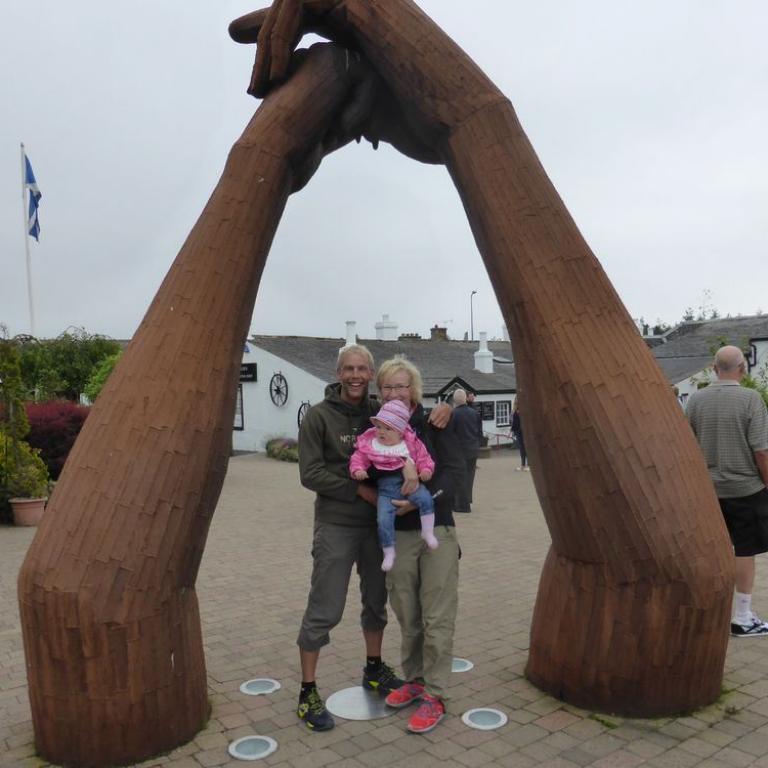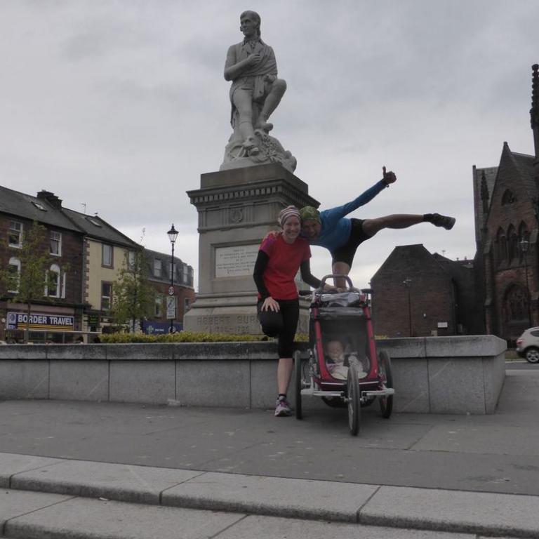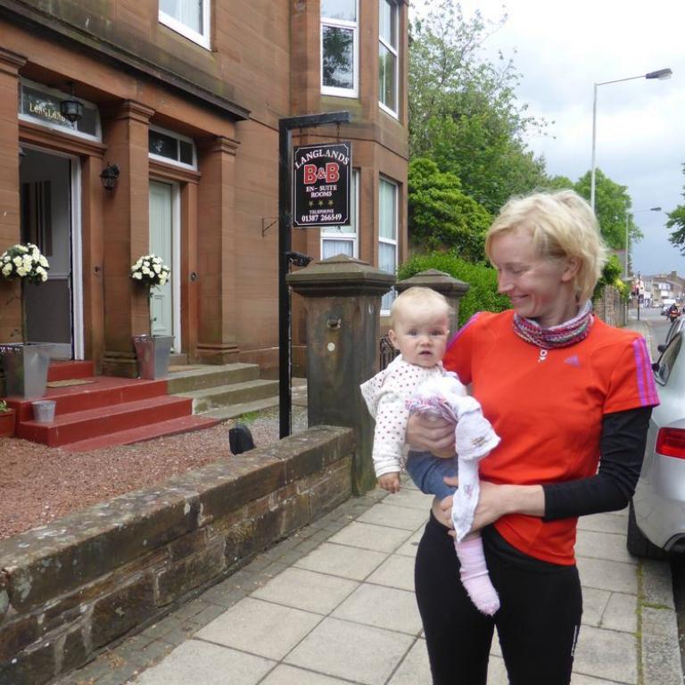Unser letztes Ziel für den Tag war die gemütliche Ortschaft Dumfries, wo wir das Langland B&B reserviert hatten. Wir wurden sehr freundlich empfangen und im Zimmer hatten wir auch ein Bettchen für die Emma. Nach kurzer Ruhe gingen wir noch mit Emma im Babyjogger laufen. Zuerst auf einem Trail und dann erkundeten wir noch das Städtchen. Wir besuchten noch die Statue von Robert Burns, dem Poeten, liefen an den idyllischen Fluß Nith, zur Hängebrücke und durch verträumte Gassen, bevor wir wieder im B&B ankamen und den Abend bei einer gemütlichen Flasche Wein und einer Brotzeit, nachdem Emma eingeschlafen war, ausklingen ließen :-)