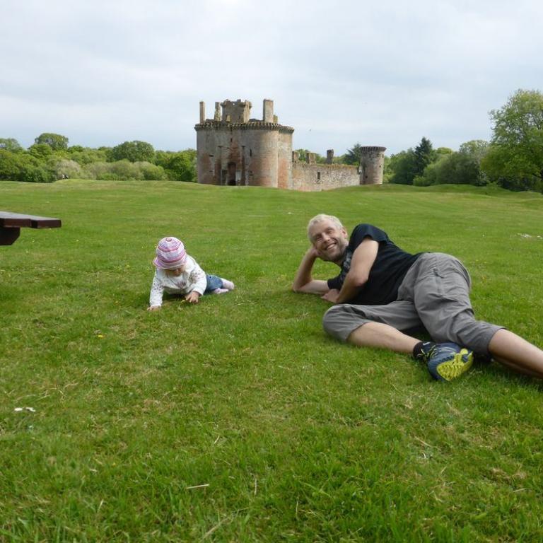 Nur 10 Kilometer weiter erreichten wir bei Sonnenschein das Caerlaverock Castle aus dem 13. Jahrhundert. Die Wasserburg liegt eindrucksvoll in einem Sumpf und Schilfgebiet. Wir kauften uns einen Schottlan Pass für 40 Pfund pro Person, wo wir die nächsten 14 Tage viele Sehenswürdigkeiten Schottlands besichtigen können. Nach der Besichtigung, legten wir uns in den schön angelegten Rasen und genossen die Sonne und Emma konnte sich austoben, bevor es wieder weiter ging :-)