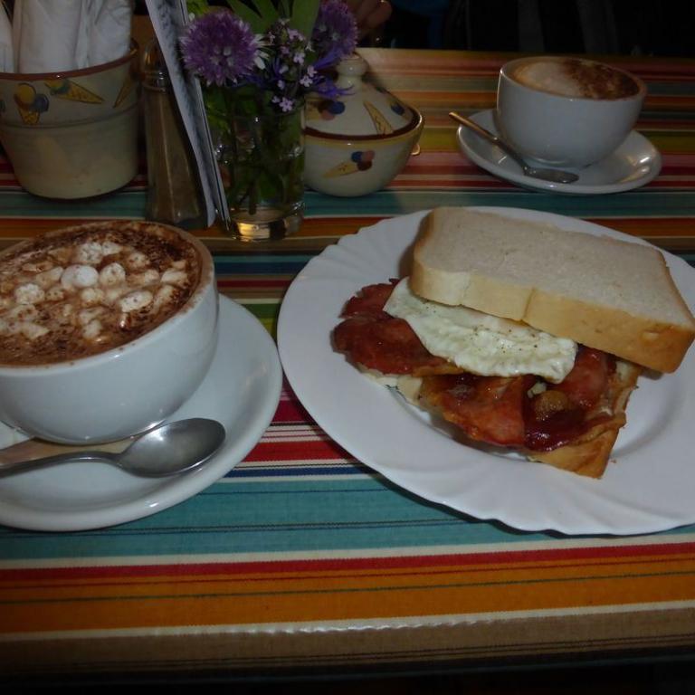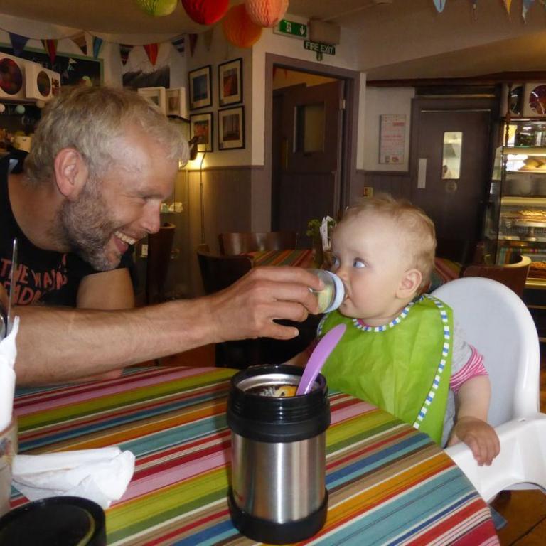 Nach 10 km Lauf suchten wir uns ein Lokal zum Abendessen. Wir zogen uns kurz um, Deo verbringt manches Wunder und schon waren wir salonfähig :-) Wir fanden ein amerikanisches, aber gemütliches Restaurant. Wir bekamen Steak und Pizza, von der Emma auch ganz begeistert war. Die kleine Maus bekam einen Orangensaft mit Strohhalm, der ihr super schmeckte. Es dauerte nicht lange und Emma unterhielt wieder das ganze Lokal. Alle waren begeistert wenn unsere Süße sie angrinst und jodelte. Sie krabbelte von einem Tisch zum nächsten und begrüßte die Leute mit einem lauten Juchzer. Da wir jetzt schon 16 Tage in Schottland waren, mußten wir natürlich auch mal einen Whisky probieren. Wir entschieden uns für den 10 Years old Talisker. Naja irgenwie kriegt man das "Water of life" schon runter. Es geht doch nichts über ein gutes Bier :-) Nach dem Essen marschierten wir wieder zurück zum B&B und ließen den Abend langsam ausklingen.