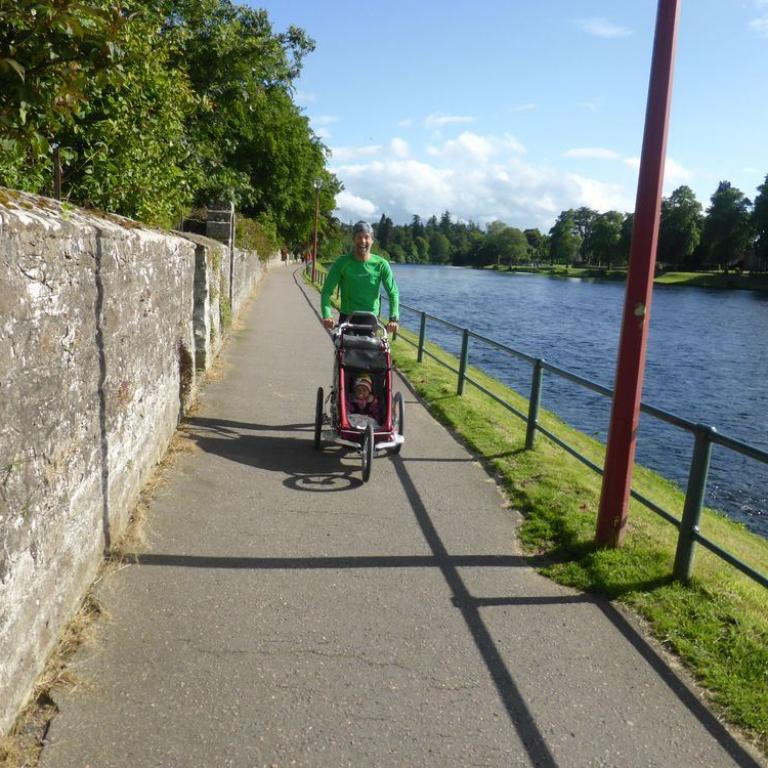 Nach dem wohltuenden Schläfchen mußten wir wieder raus. Die Sonne schien und es war einfach nur herrlich. Wir packten alles in den Babyjogger. Natürlich auch Emma :-) und ab ging es durch Inverness bis zum River Ness und immer am Fluß entlang. Es machte uns riesig Spaß. Wir besuchten noch das Inverness Castle von außen und liefen durch die Gassen.