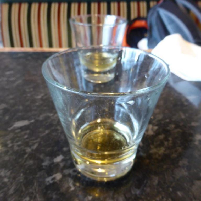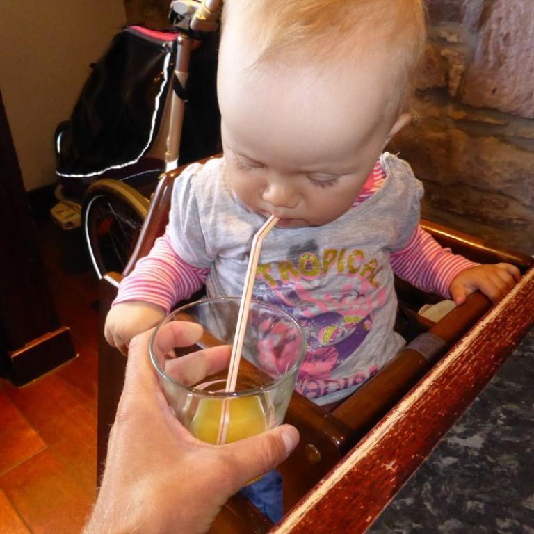 Nach 10 km Lauf suchten wir uns ein Lokal zum Abendessen. Wir zogen uns kurz um, Deo verbringt manches Wunder und schon waren wir salonfähig :-) Wir fanden ein amerikanisches, aber gemütliches Restaurant. Wir bekamen Steak und Pizza, von der Emma auch ganz begeistert war. Die kleine Maus bekam einen Orangensaft mit Strohhalm, der ihr super schmeckte. Es dauerte nicht lange und Emma unterhielt wieder das ganze Lokal. Alle waren begeistert wenn unsere Süße sie angrinst und jodelte. Sie krabbelte von einem Tisch zum nächsten und begrüßte die Leute mit einem lauten Juchzer. Da wir jetzt schon 16 Tage in Schottland waren, mußten wir natürlich auch mal einen Whisky probieren. Wir entschieden uns für den 10 Years old Talisker. Naja irgenwie kriegt man das "Water of life" schon runter. Es geht doch nichts über ein gutes Bier :-) Nach dem Essen marschierten wir wieder zurück zum B&B und ließen den Abend langsam ausklingen.