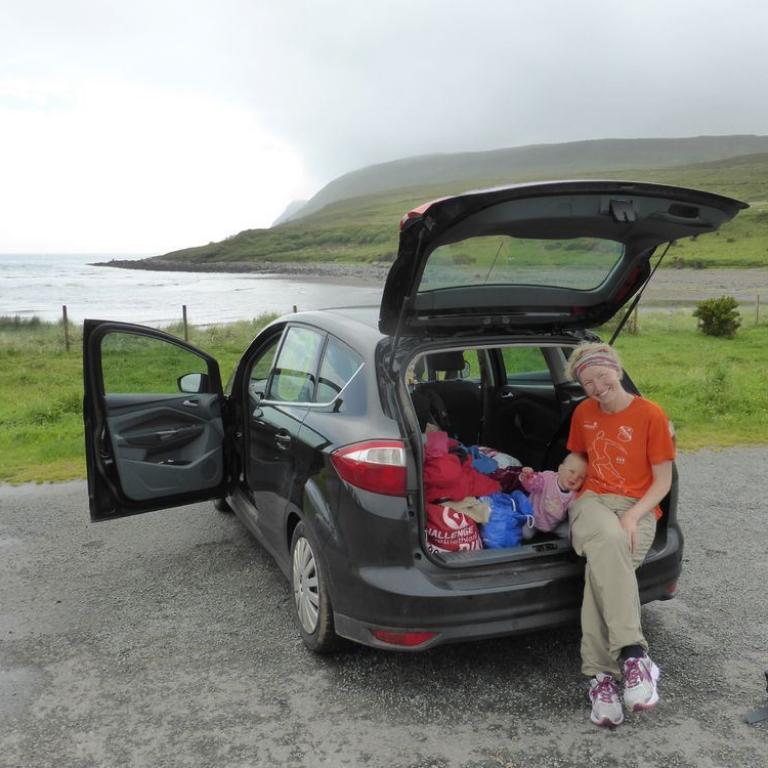 Heute war zuerst faulenzen angesagt. Nach dem Frühstück und einer ausgiebigen Spieleinheit legten wir uns nochmals mit der kleinen Maus ins Bett. Da es regnete hatten wir auch nicht so eilig :-) Erst um 13 Uhr brachen wir in Richtung Cuillin Hills auf. Zuerst besuchten wir kurz die Distillery Talisker Sky und fuhren dann weiter zum Start unserer Wanderung in Glenbrittle.