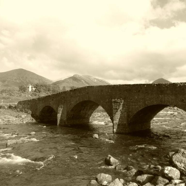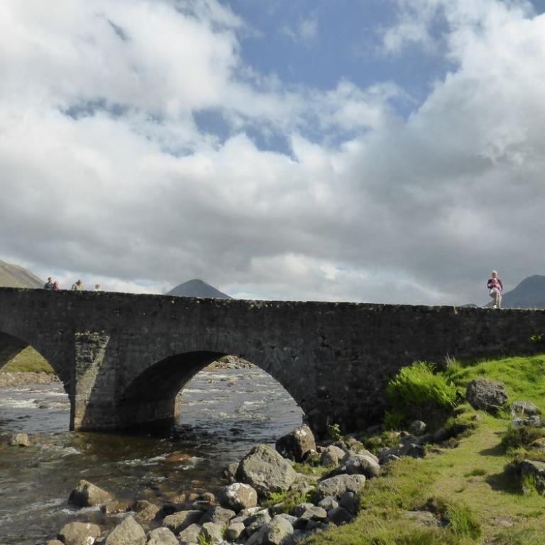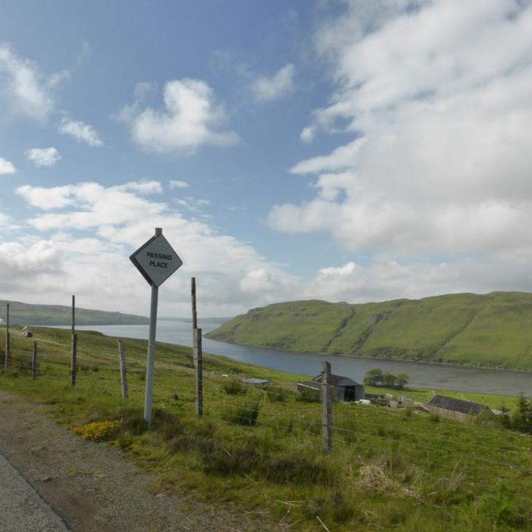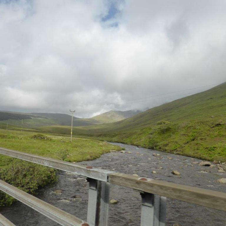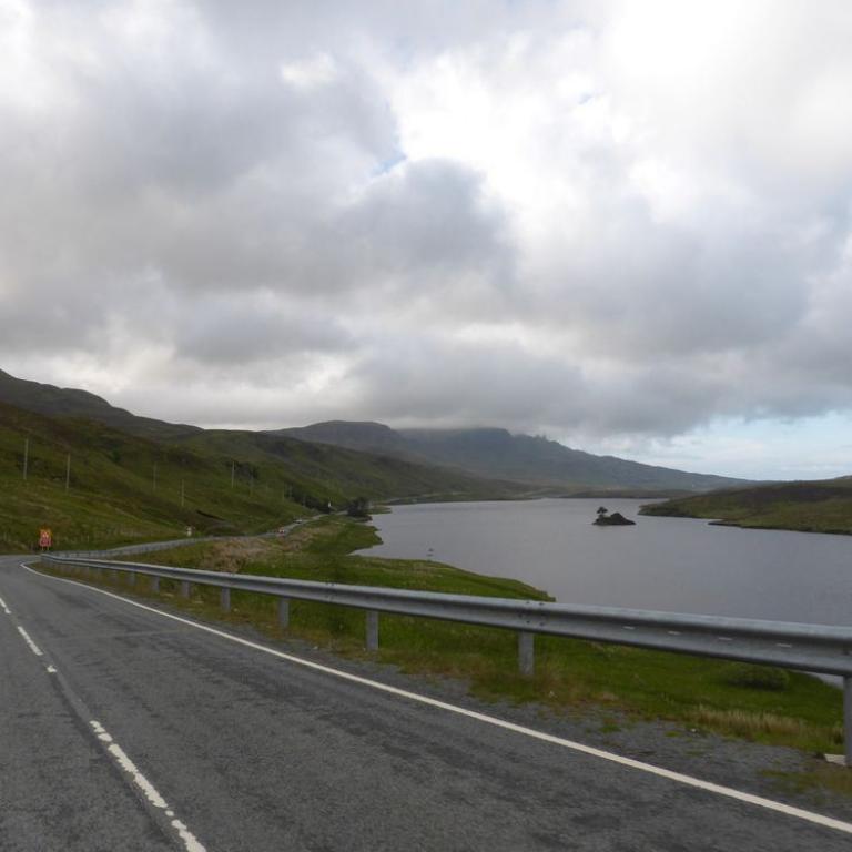 Zurück fuhren wir wieder über die halsbrecherische, einspurige, aber traumhafte Straße. Die Sonne schien und der Ausblick auf die Berge, Lochs und Täler herrlich. In Sligachan hielten wir an und konnten die Cullins fast wolkenfrei fotografieren. Das Wetter konnte nicht mehr besser sein.