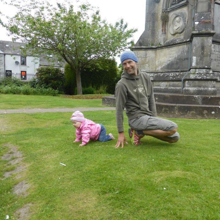 An historischer Stätte gingen wir wandern. Im Glen Trool wanderten wir um den Loch Trool, kamen vorbei an Bruce`s Stone, wo dem King of Scottland ein Denkmal gesetzt wurde. 1307 schaffte er im Tal mit 300 Mann einen Sieg über 1500 Engländer. Die Landschaft war einmalig und auch Emma hatte wieder den größten Spaß in der Kraxn. Nach ca. 2 Stunden hatten wir den See umrundet und machten es uns dann noch auf unserer Picknickdecke bequem. Es gab Käsesemmeln und Banane :-)