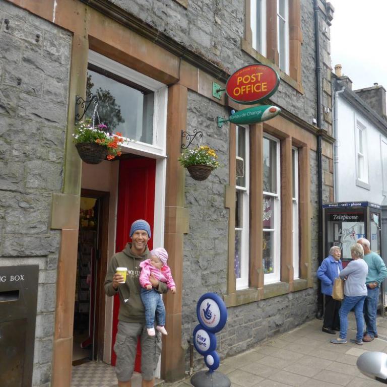 Gleich nach dem Frühstück verabschiedeten wir uns von unserer freundlichen Gastgeberin und fuhren weiter in das ca. 50 km entfernte Örtchen Newton Steward. Hier gingen wir ein paar Meter am Fluß, Emma durfte in einem Park spielen und wir kauften uns eine Kleinigkeit beim Bäcker, bevor es wieder weiter ging.