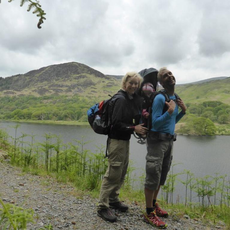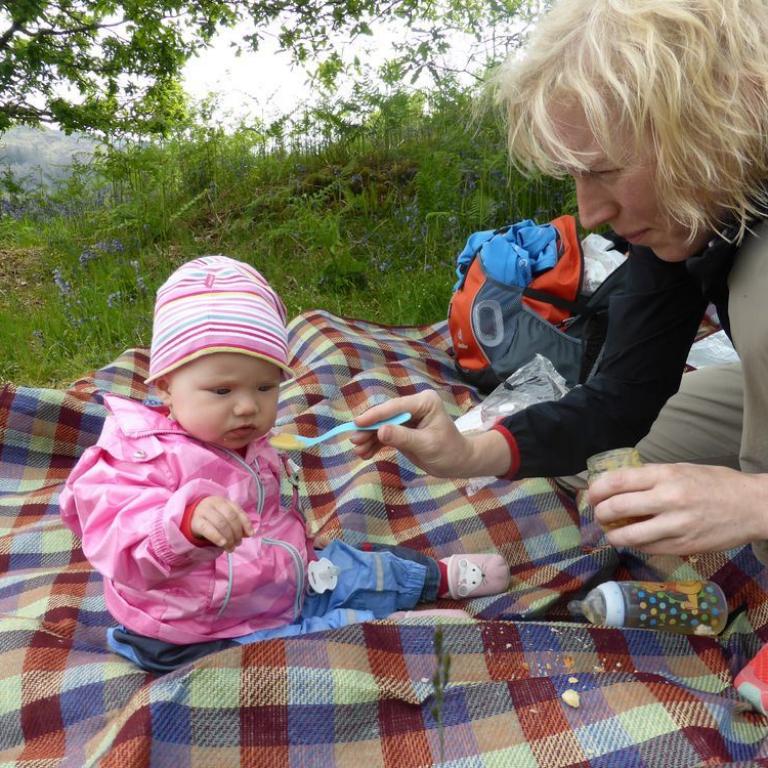 An historischer Stätte gingen wir wandern. Im Glen Trool wanderten wir um den Loch Trool, kamen vorbei an Bruce`s Stone, wo dem King of Scottland ein Denkmal gesetzt wurde. 1307 schaffte er im Tal mit 300 Mann einen Sieg über 1500 Engländer. Die Landschaft war einmalig und auch Emma hatte wieder den größten Spaß in der Kraxn. Nach ca. 2 Stunden hatten wir den See umrundet und machten es uns dann noch auf unserer Picknickdecke bequem. Es gab Käsesemmeln und Banane :-)