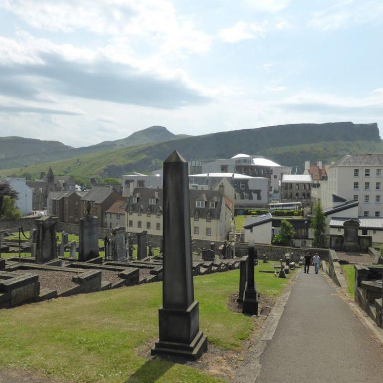 Über einen alten Friedhof, von dem wir eine super Aussicht hatten, stiegen wir zum Calton Hill auf.