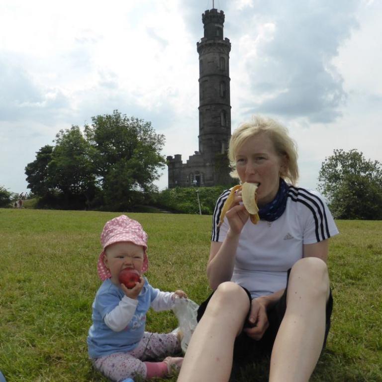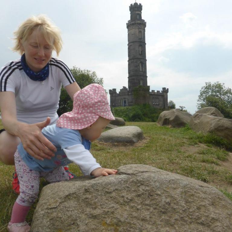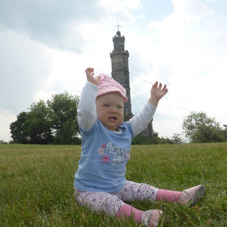 Wir genossen den Ausblick vom Calton Hill und bestaunten das Nelson Monument, das National Monument und das ehemalige Royal Observatory. Wir setzten uns in den Rasen und Emma durfte sausen :-)