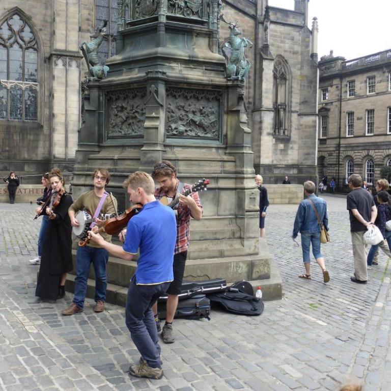 Über die Royal Mile gingen wir in Richtung Edinburgh Castle. Es waren Straßenkünstler und Musiker an allen Ecken und bestaunten die vielen bunten Geschäfte.