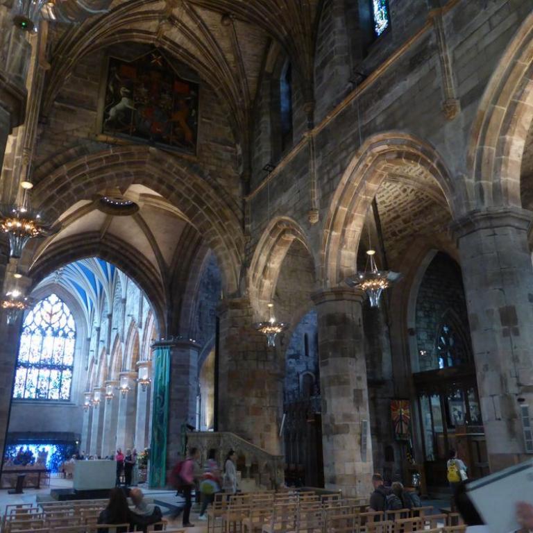 Über die Royal Mile gingen wir wieder in Richtung Holyroodhouse. Wir kamen an der High Kirk aus dem 12. Jahrhundert vorbei und gingen die manche der kleinen Geschäfte.
