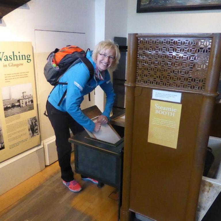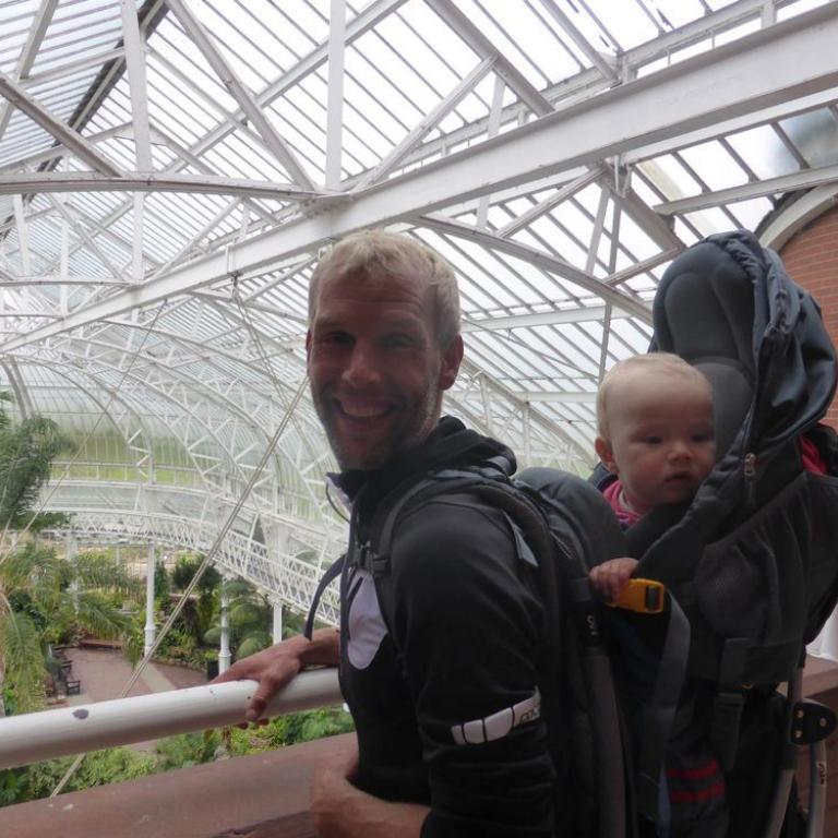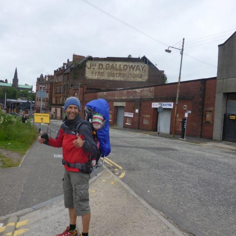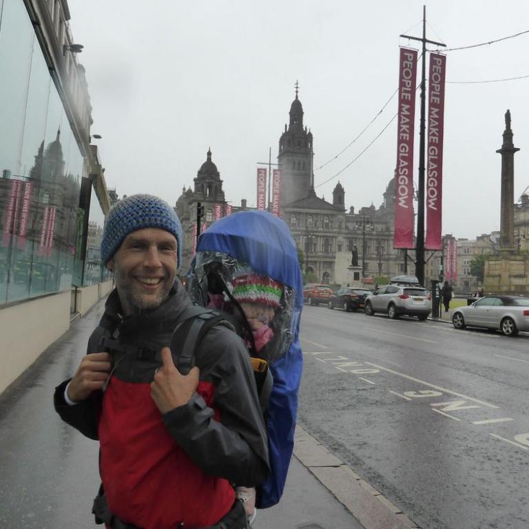 Nach dem Frühstück und auschecken fuhren wir auf diektem Weg nach Glasgow. Nach ca. 1 Stunde Fahrt kämpften wir uns durch die Großstadt. Ohne größere Probleme fanden wir einen Parkplatz in einem Einkaufscenter (St. Enoch Center). Emma benötigte zuerst einen Kundendienst :-), bevor es bei leichtem Nieselregen los ging. Emma fühlte sich wieder puddelwohl in der Kraxn. Wir marschierten zuerst zum People`s Palace & Wintergardens.