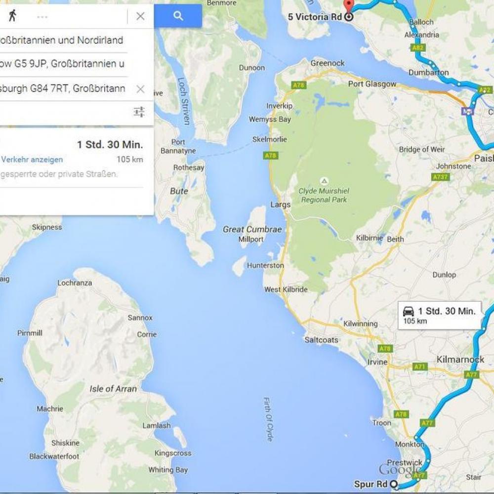 Wieder kämpften wir uns mit Navi und Karte teilweise auf 6 spurigen Straßen und Linksverkehr durch Glasgow. Trotzdem kamen wir ohne größere Probleme in Richtung Loch Lomond. Nach ca. 45 Minuten erreichten wir Helensburgh am Fifth of Clyde. Hier hatte ich ein nettes B&B, das Whistlers Dell reserviert. Wir wurden sehr freundlich mit Tee und Kaffee vom Hausherren empfangen. Von den beiden Hunden war Emma natürlich gleich extrem begeistert. Nach dem wir ausgepackt hatten liefen wir mit dem Babyjogger in die Ortschaft und kauften eine Kleinigkeit für das Abendessen ein. Insgesamt waren wir 8 km am Strandufer unterwegs.