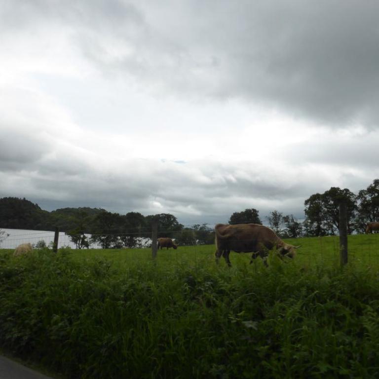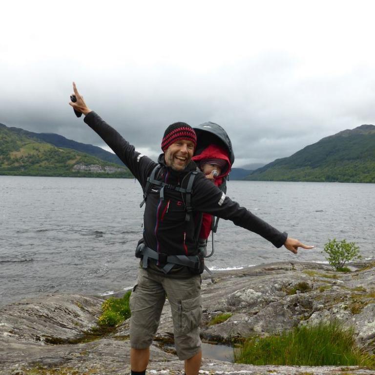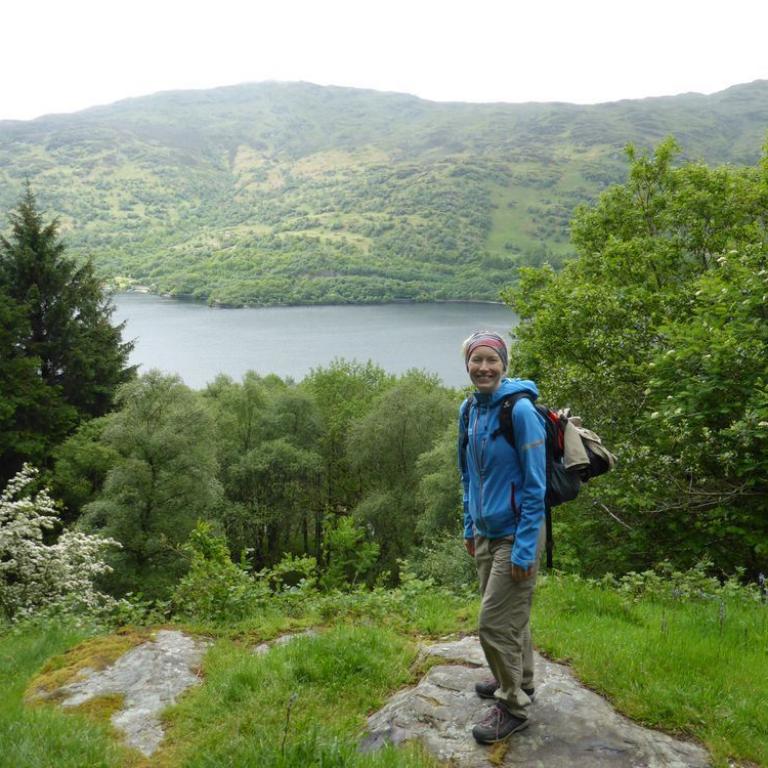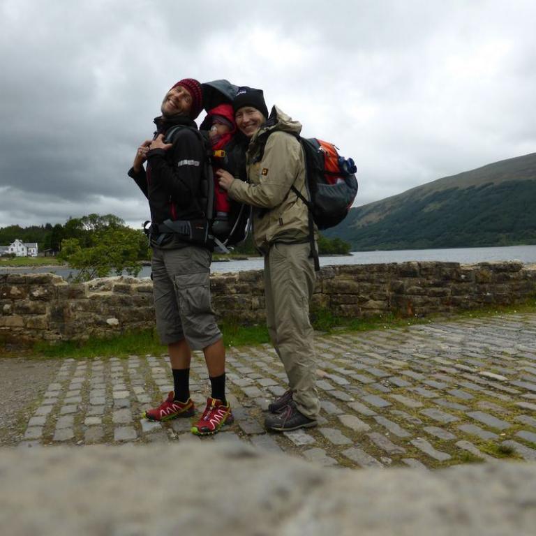 In unserem B&B waren wir die einzigen Gäste und wurden auch noch sehr freundlich behandelt. Um 8 Uhr gab es ein leckeres Frühstück, zuerst Früchte und frisch gepressten Saft und dann eine Art warmen Haferbrei und hausgemachtes Brot mit Marmelade. Danach fuhren wir an die Ostseite des Loch Lomonds bis ans Ende der ausgebauten Straße. Kurz nach dem Rowardennan Lodge gab es einen Parkplatz, von wo aus wir in Richtung Norden, zuerst am See wanderten. Leider war der ursprüngliche West Highlandway wegen Bauarbeiten geperrt, so das wir auf einen Forstweg ausweichen mußten. Nur selten hatten wir einen Blick auf den Loch Lomond und die umliegenden Berge. Nach ca. 1 1/2 Stunden kehrten wir um und gingen zum Ausgangspunkt zurück. Zwischenzeitlich hatte Emma Hunger und wir gaben ihr das Mittagessen, wo wir feststellten, das die kleinen Stechmücken, die Midges sehr böse und zahlreich waren. Trotz Mückenspray ließen sich die Teile nicht abschrecken. Nach knapp 3 Stunden Wanderung erreichten wir wieder den Parkplatz.