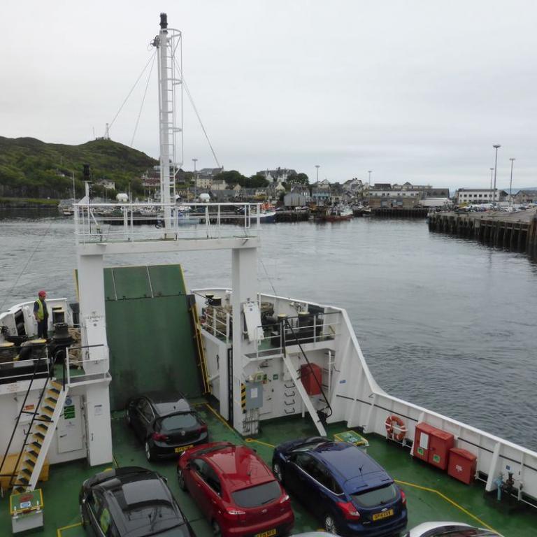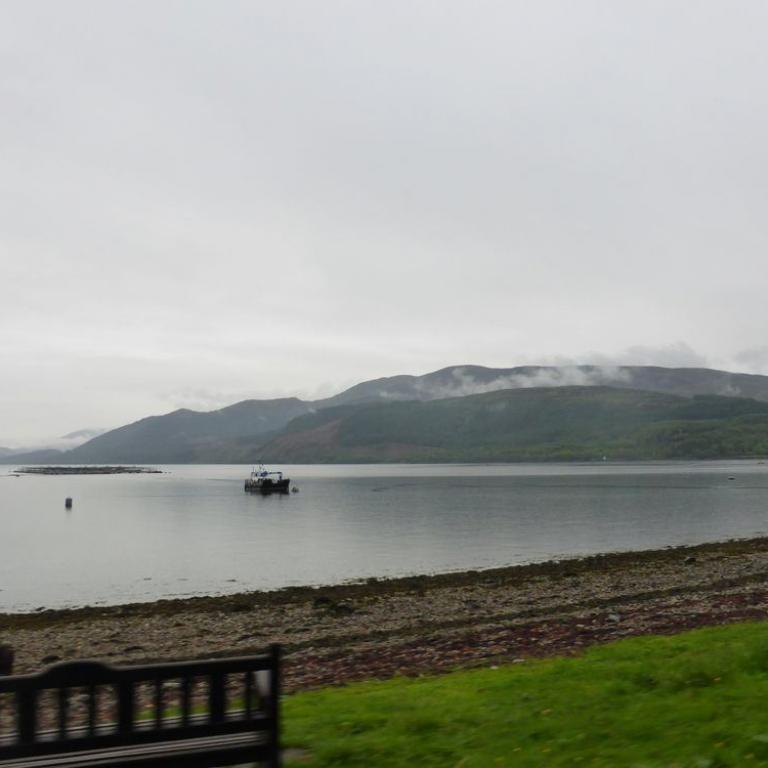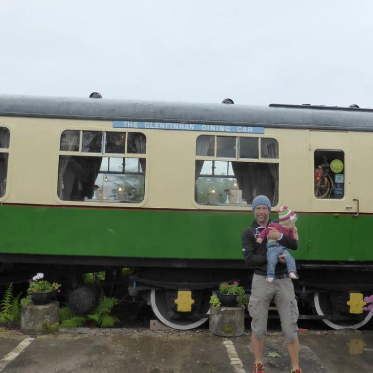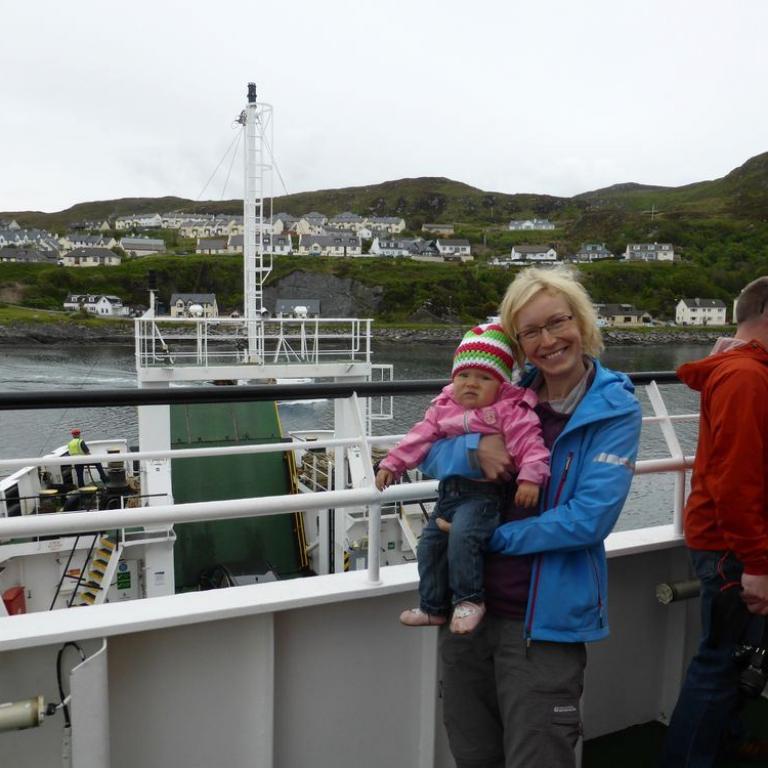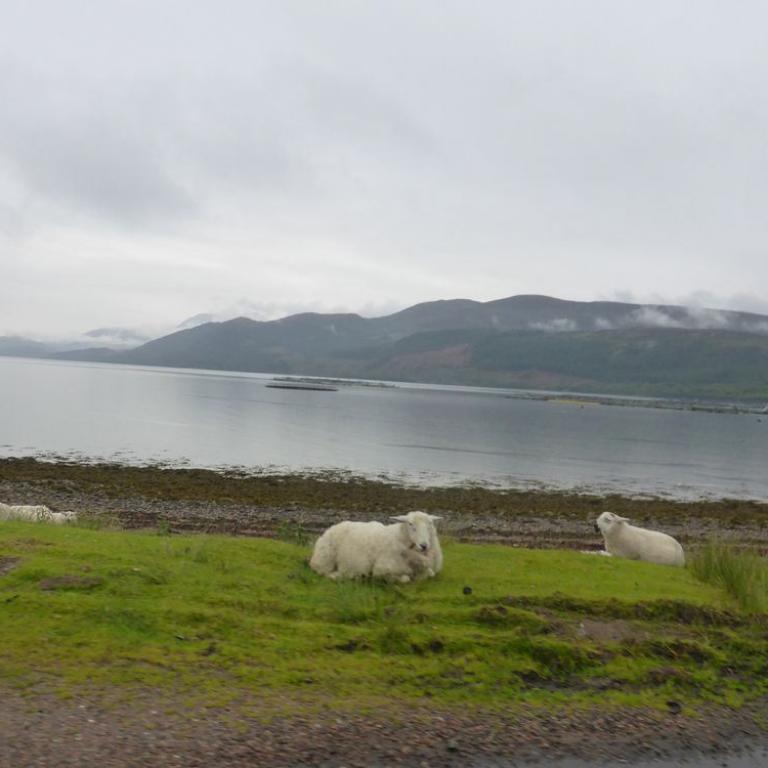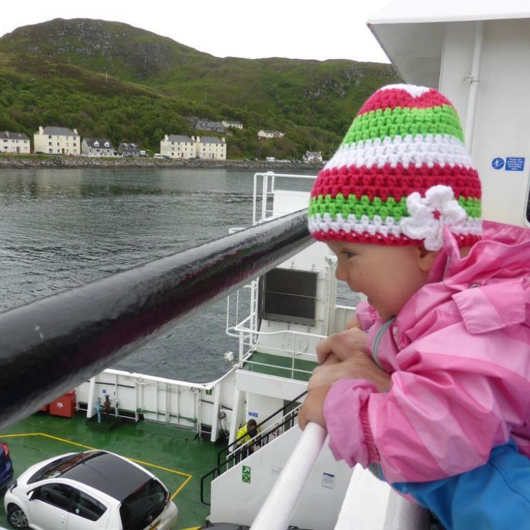 Schon um 6 Uhr holte uns Emma heute aus den Federn. Ideal, wir packten zusammen, luden alles ins Auto und flohen vor den vielen Midges :-) Wir fuhren von Kinlochleven bis nach Inchree um dort mit der Fähre auf die andere Seite des Loch Linnhe überzusetzen. Von hier fuhren wir nordwärts auf einer kleinen, einspurigen Straße. Wir hatten einen herrlichen Blick auf den schneebedeckten Ben Nevis, fuhren durch Sumpflandschaft, Schafe kreuzten die Straße und weit und breit kein Mensch zu sehen. Dann kamen wir auf die berühmte Panoramastraße Road to the Isles. In Glenfinnan hielten wir beim Eisenbahnmuseum und frühstückten in einem Wagon. Emma sauste dort auf und ab und unterhielt wieder sämtliche Leute :-) Kurz vor Mittag erreichten wir dann Mallaig, ein gemütliches Küstenstädtchen, wo wir Tickets für die Fähre zur Isle of Sky kauften und kurz durch den Ort schlenderten.