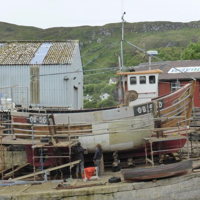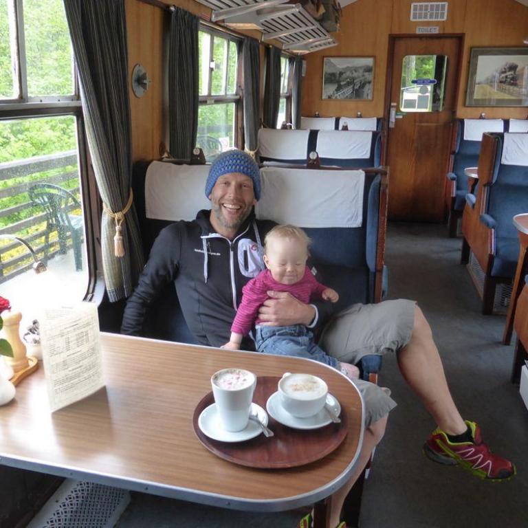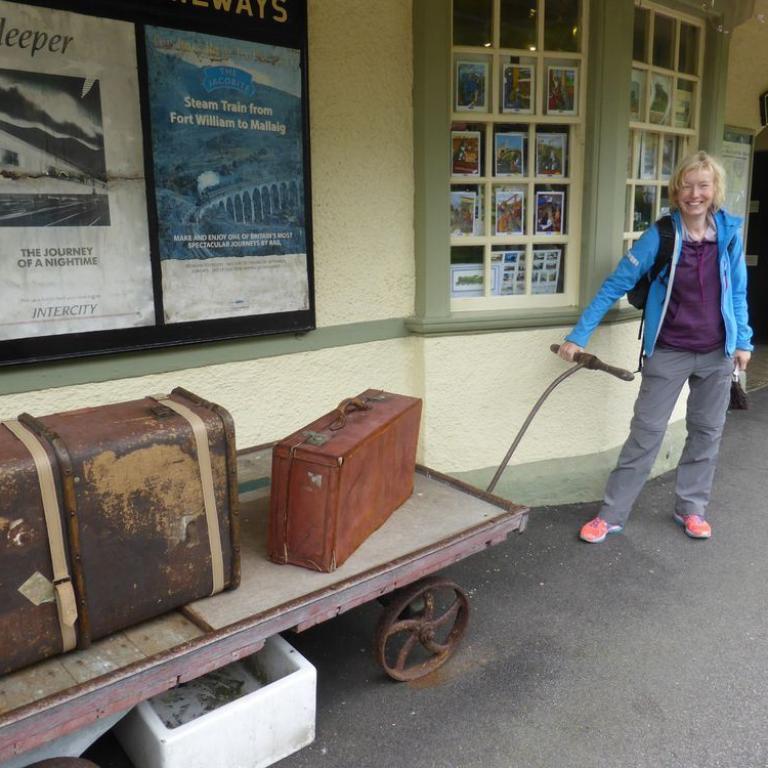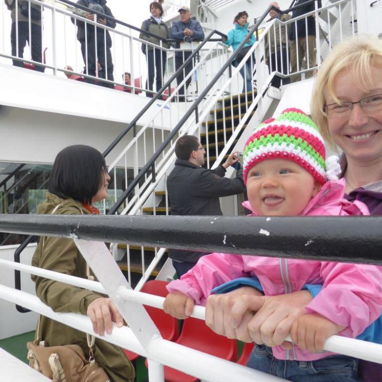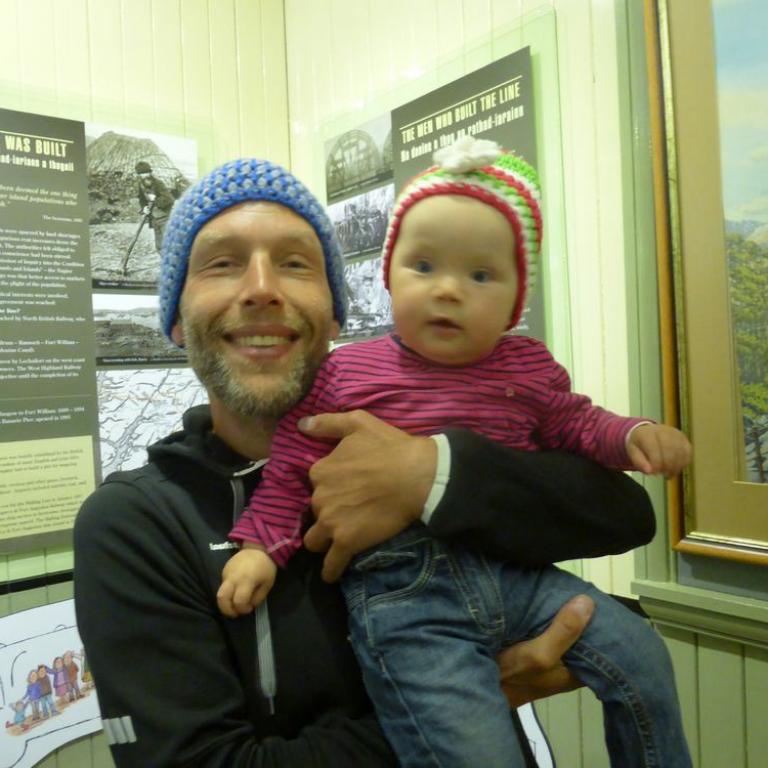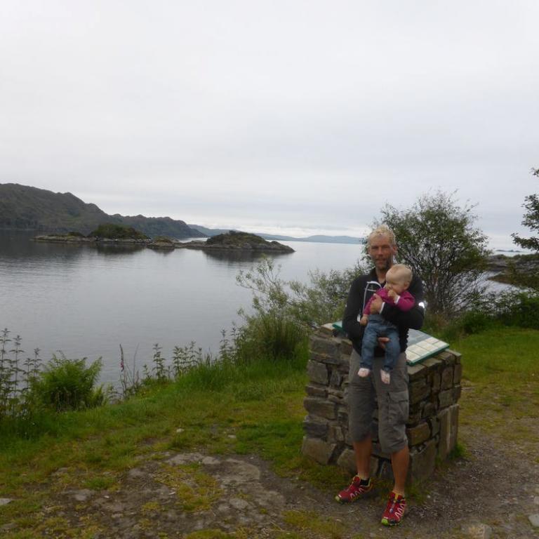 Schon um 6 Uhr holte uns Emma heute aus den Federn. Ideal, wir packten zusammen, luden alles ins Auto und flohen vor den vielen Midges :-) Wir fuhren von Kinlochleven bis nach Inchree um dort mit der Fähre auf die andere Seite des Loch Linnhe überzusetzen. Von hier fuhren wir nordwärts auf einer kleinen, einspurigen Straße. Wir hatten einen herrlichen Blick auf den schneebedeckten Ben Nevis, fuhren durch Sumpflandschaft, Schafe kreuzten die Straße und weit und breit kein Mensch zu sehen. Dann kamen wir auf die berühmte Panoramastraße Road to the Isles. In Glenfinnan hielten wir beim Eisenbahnmuseum und frühstückten in einem Wagon. Emma sauste dort auf und ab und unterhielt wieder sämtliche Leute :-) Kurz vor Mittag erreichten wir dann Mallaig, ein gemütliches Küstenstädtchen, wo wir Tickets für die Fähre zur Isle of Sky kauften und kurz durch den Ort schlenderten.