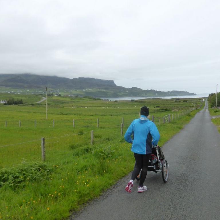 Zuerst räumten wir die Wohnung ein, gingen in den nahegelegenen Supermarkt zum Einkaufen und dann joggten wir mit dem Babyjogger durch Staffin und an den herrlichen Strand. Es nieselte leicht, aber trotzdem war es traumhaft. Am Abend aßen wir Nudeln und tranken gemütlich einen Wein :-)